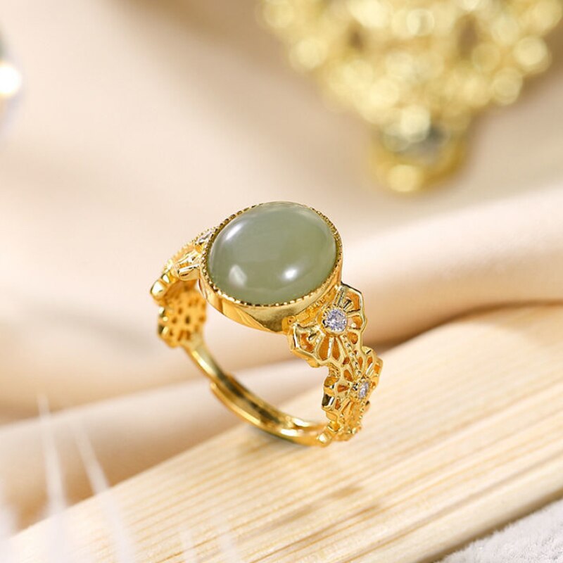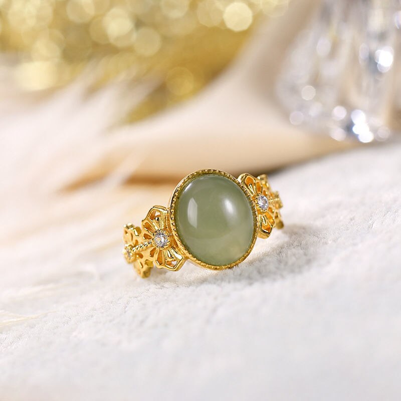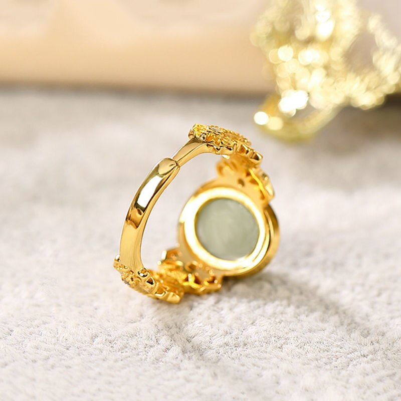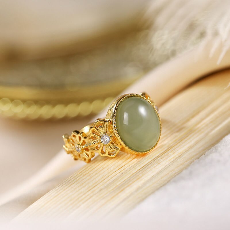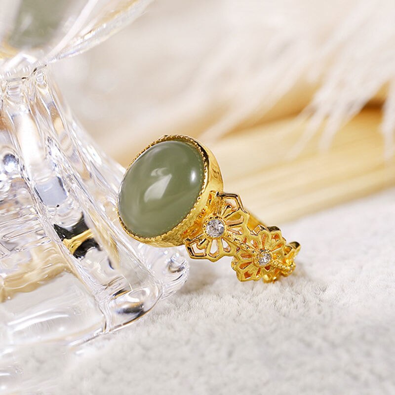 Cocktail Ring-Natural chalcedony egg-faced green rings for women elegant Chinese style charm light luxury ladies opening adjustable jewelry