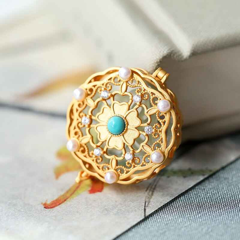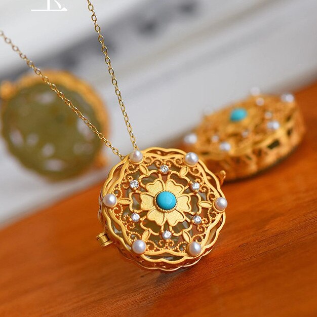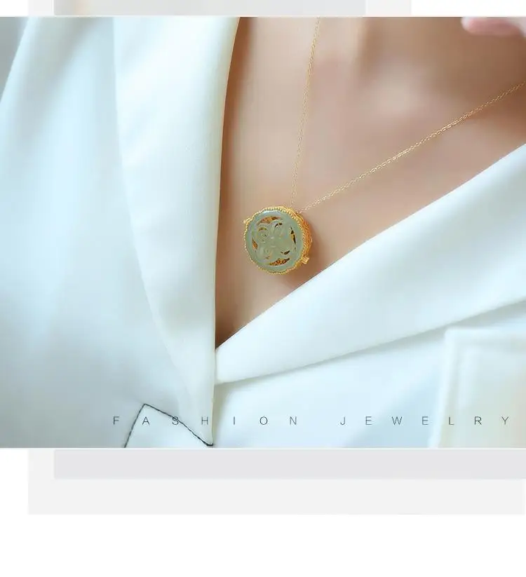Pendants-Natural Hetian jade can be opened Pendant Necklace Chinese style retro unique ancient gold craft luxury noble silver jewelry