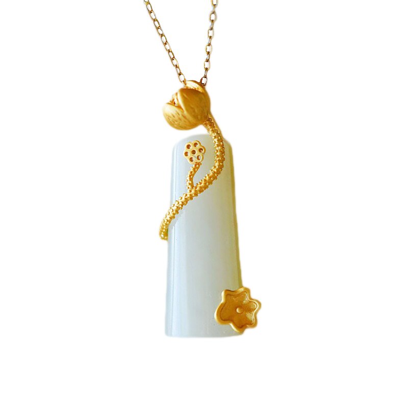 Pendants-Natural Hetian Jade Pendant Ladies Necklace Chinese Court Style Unique Ancient Gold Craft Charm Various Exquisite Jewelry