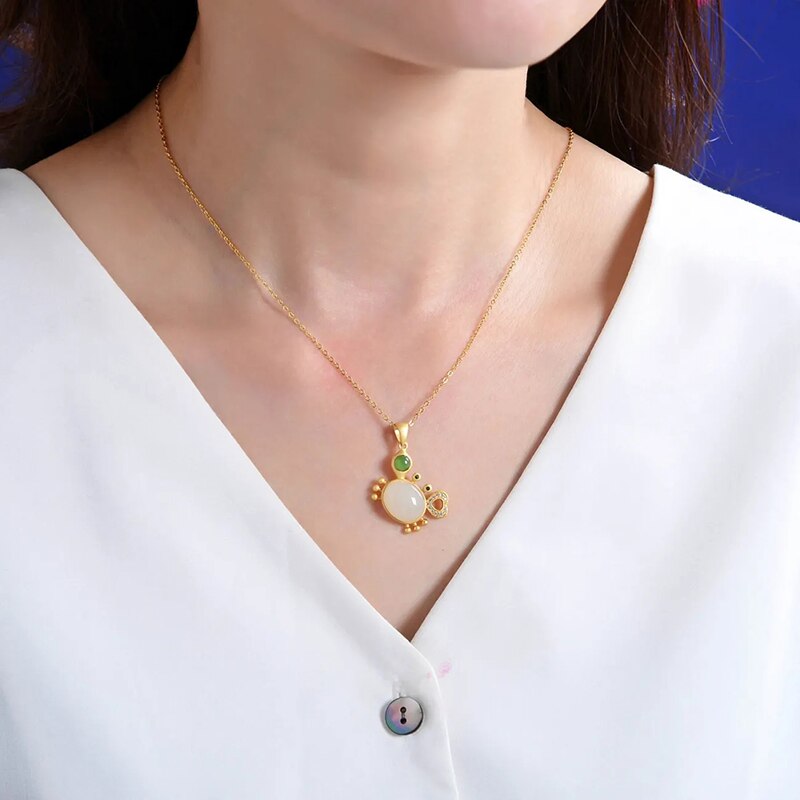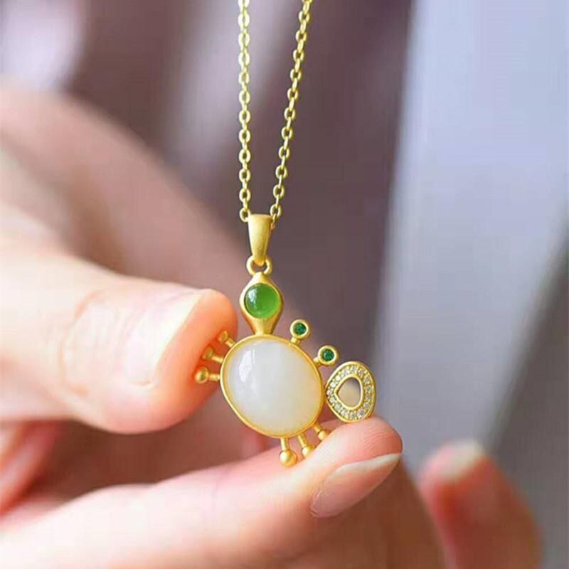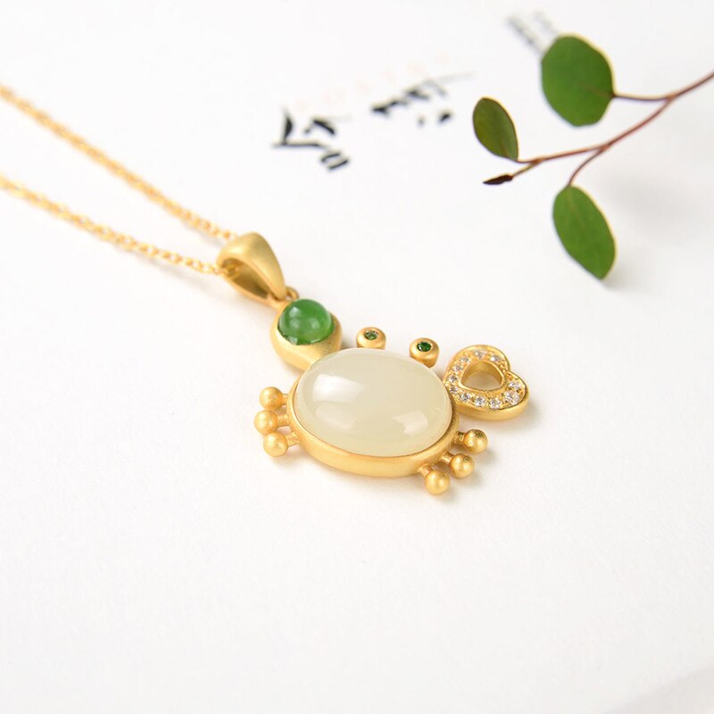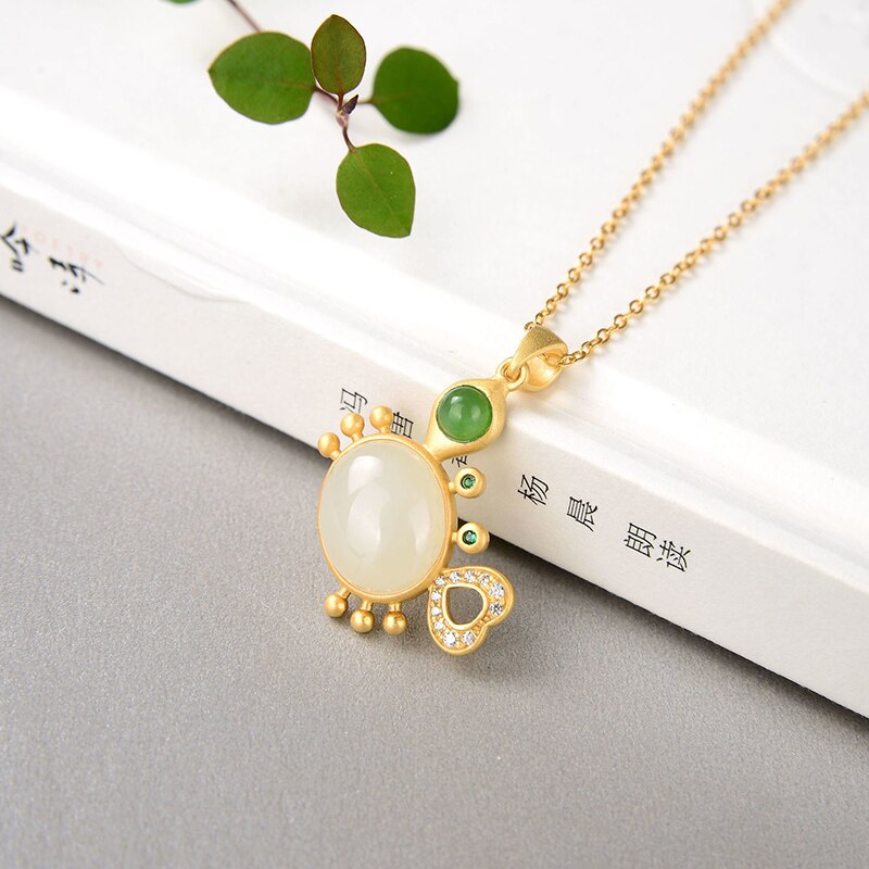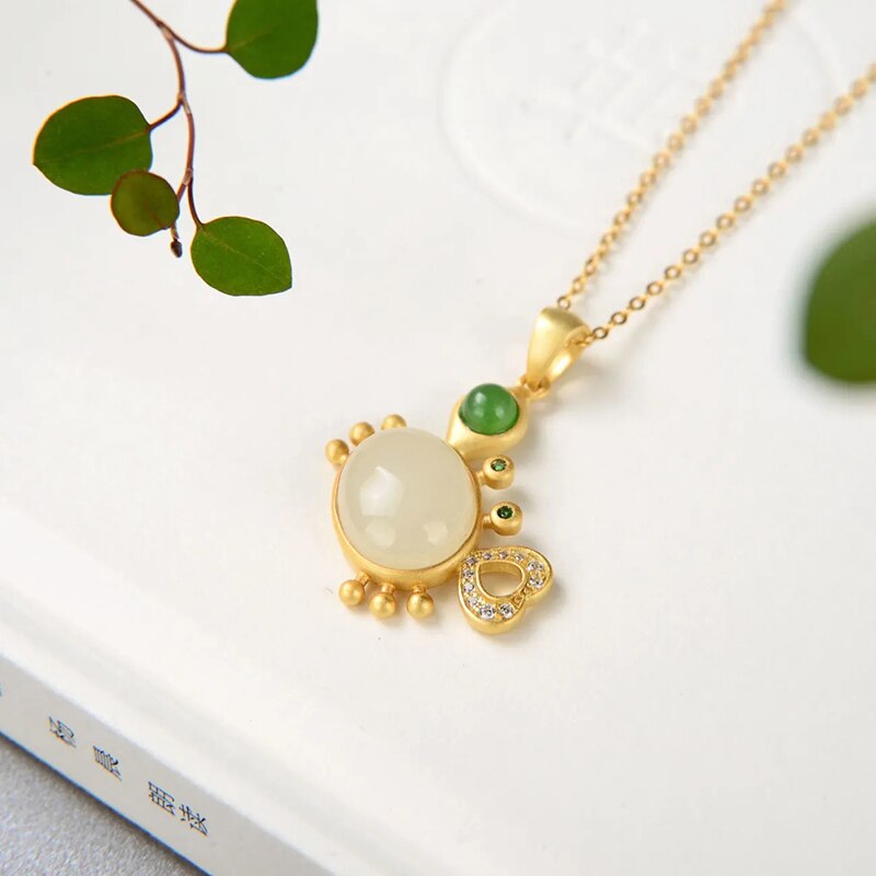 Pendants-Natural Hetian jade small crab egg face heart-shaped pendant necklace Chinese style retro elegant lovely women charm accessories