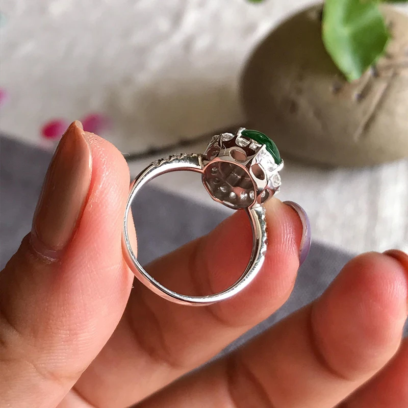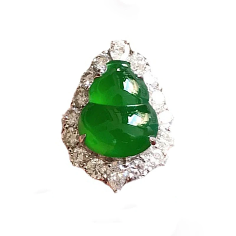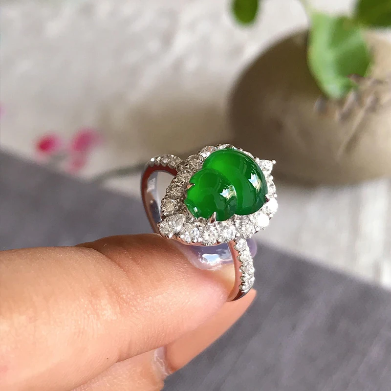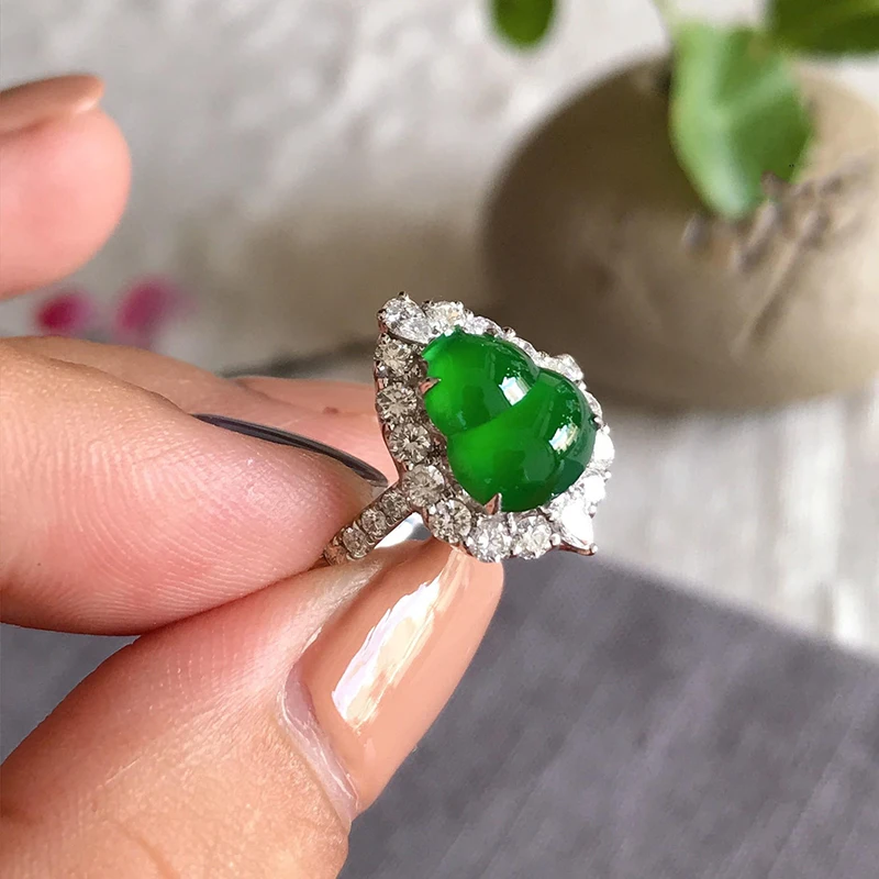Cocktail Ring-Natural Hetian jasper gourd inlaid crystal ladies ring opening adjustable Chinese retro exquisite charm silver jewelry jewellry