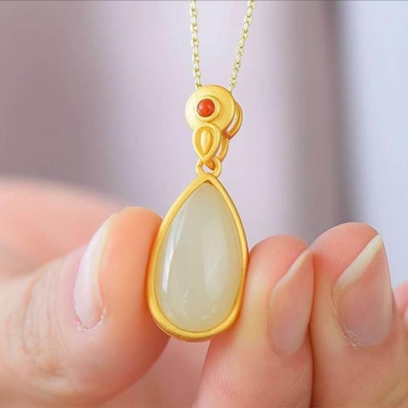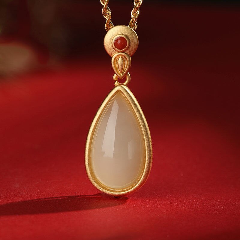 Pendants-Natural Hetian White Jade Drop Shape Pendant Necklace Small and exquisitely designed Charm Elegant Luxury Ladies Jewelry