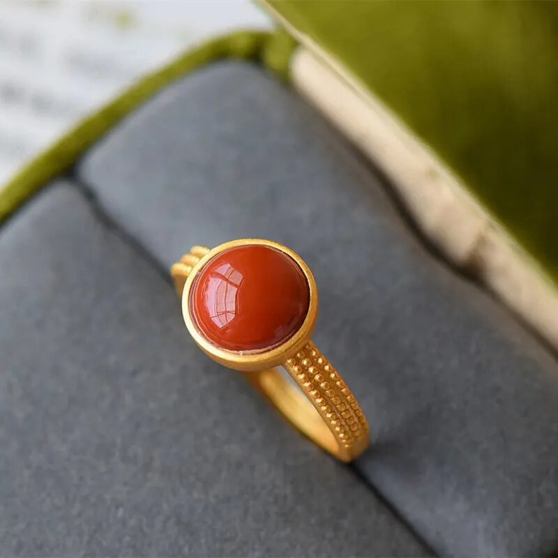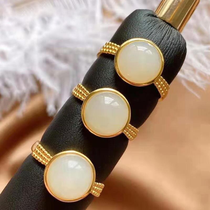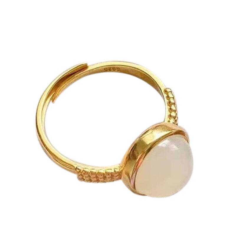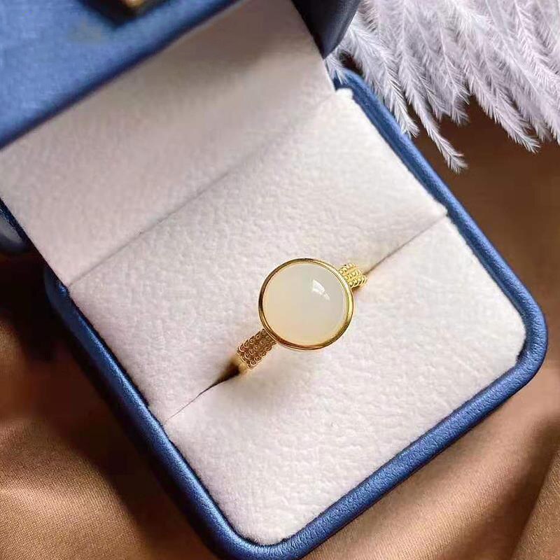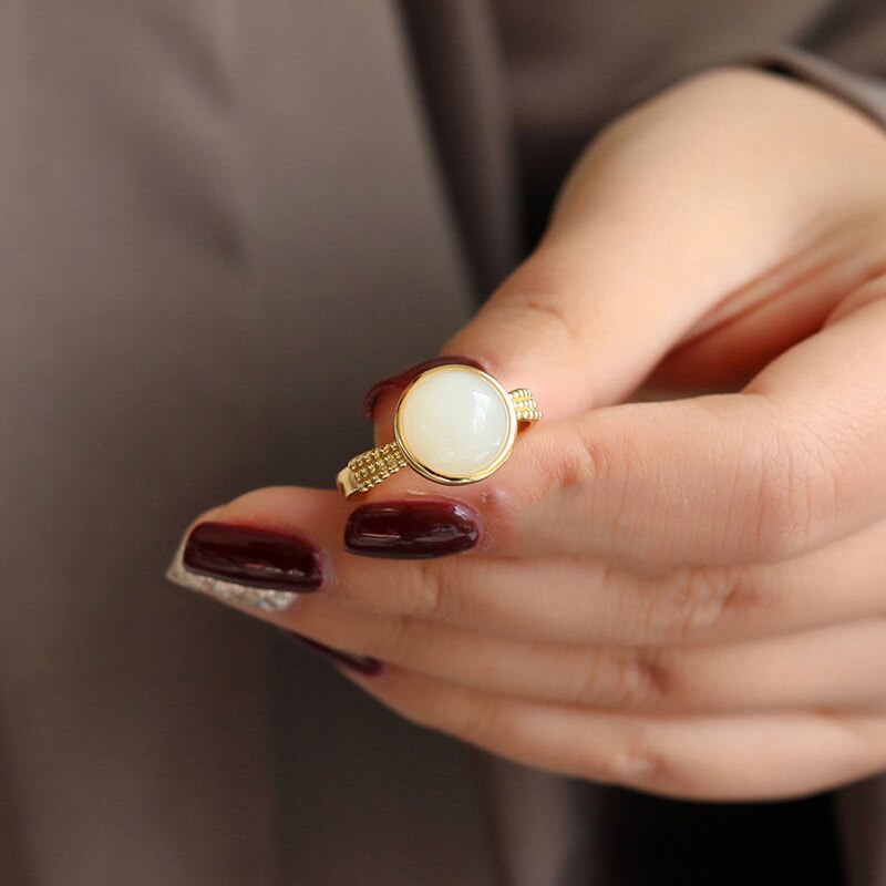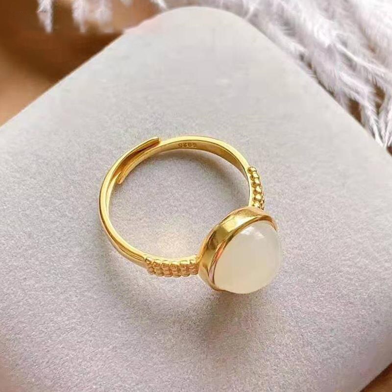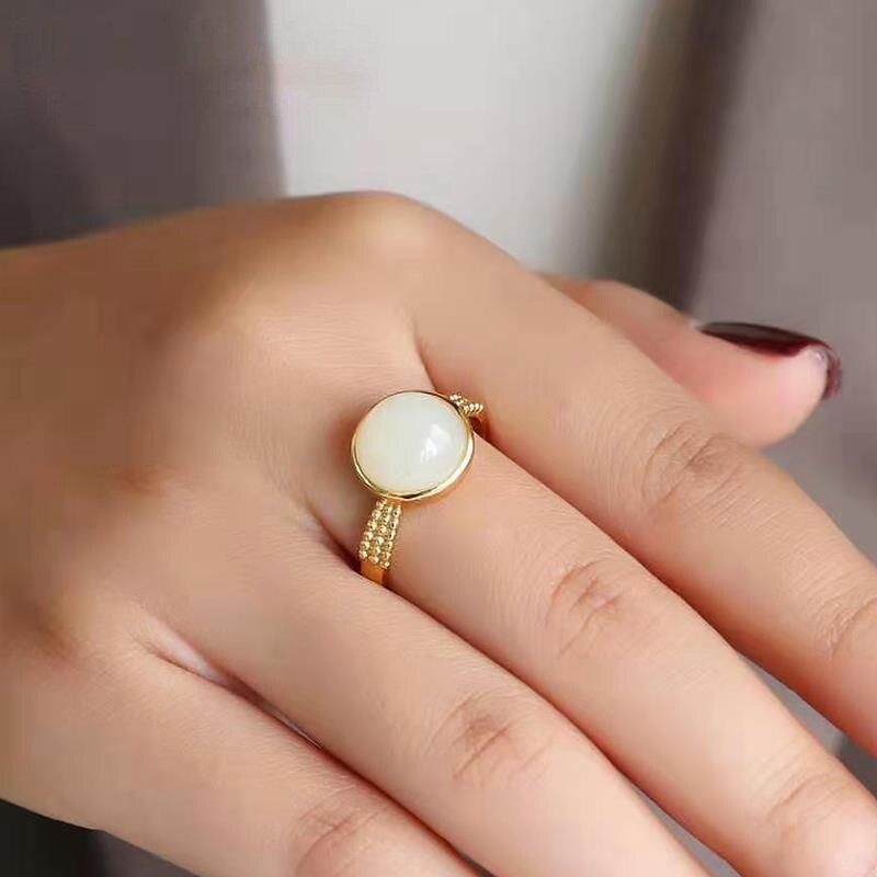Cocktail Ring-Natural Hetian white jade opening adjustable ring Chinese retro palace style unique ancient gold craftsmanship women's jewelry