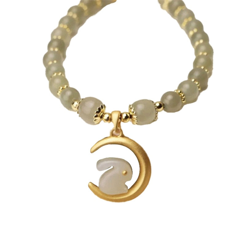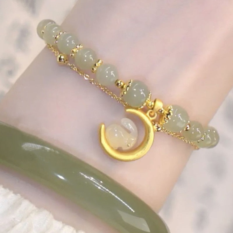 Bracelets-Natural Hotan Jade Moon Rabbit Bracelet for women Ancient gold Cute and exquisite beaded bangles jewelry gifts