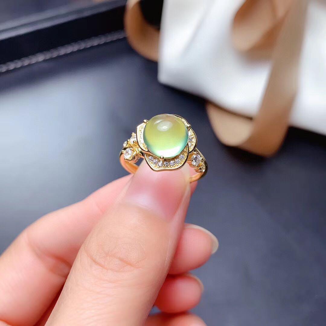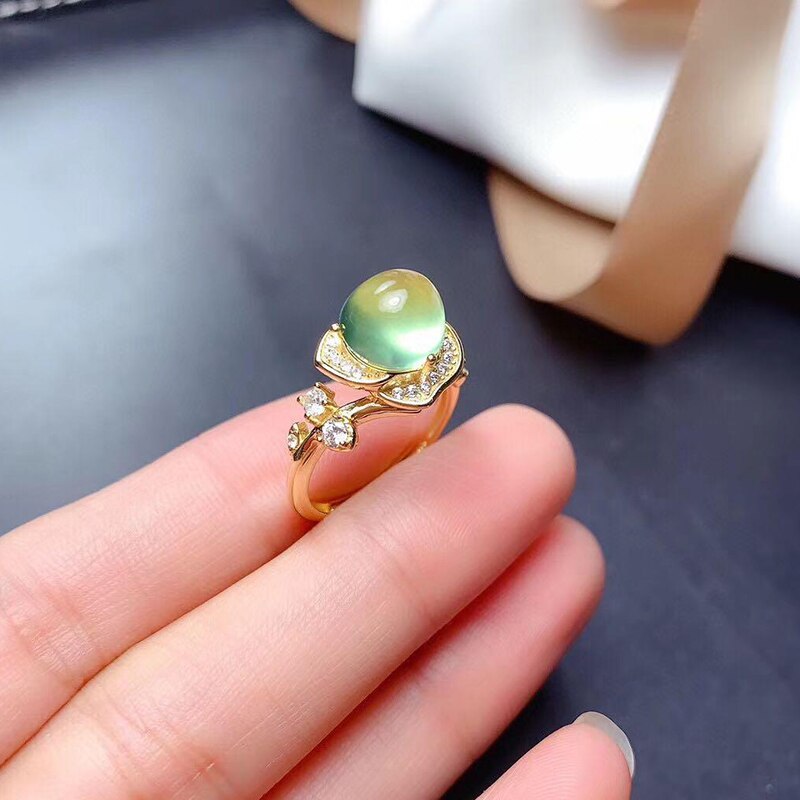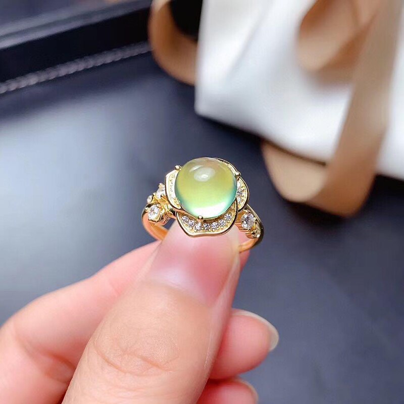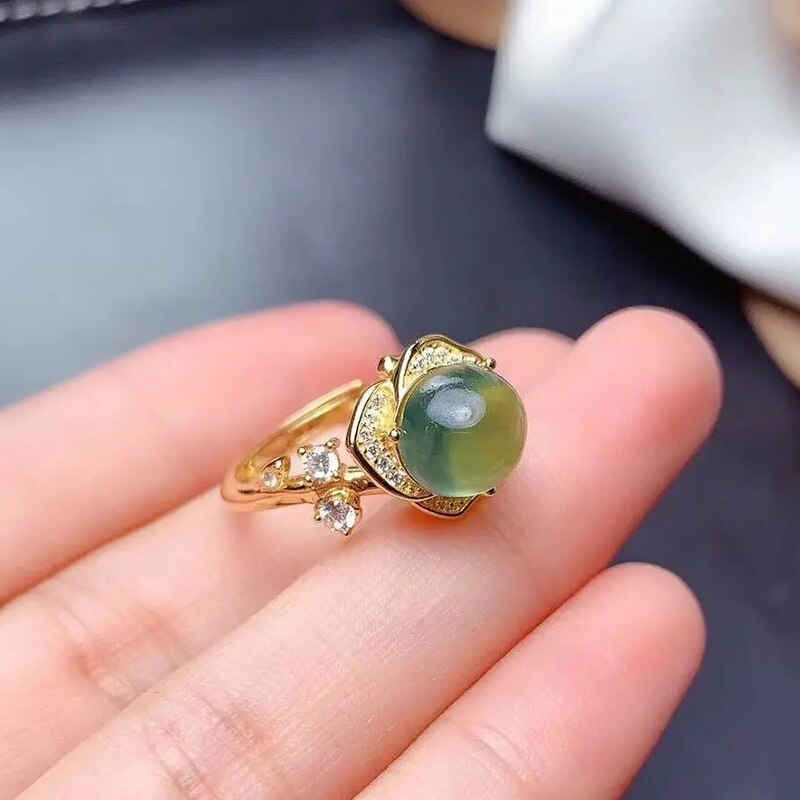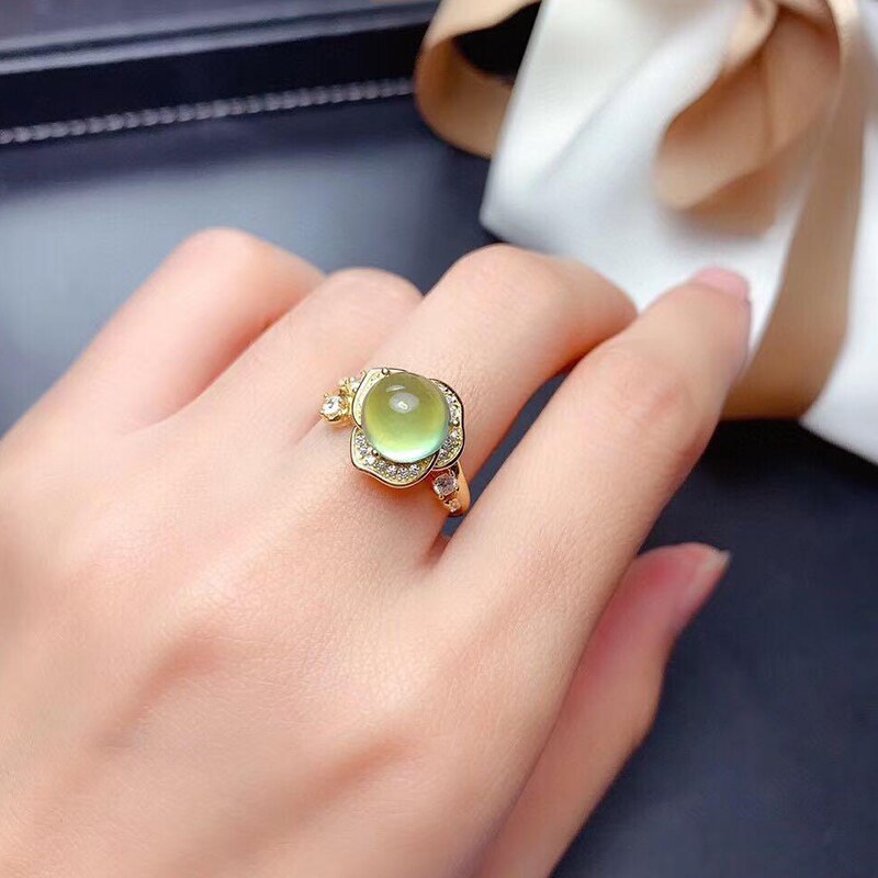 Cocktail Ring-Natural prehnite egg noodle craft flower ladies ring opening adjustable unique charm sweet light luxury silver jewelry