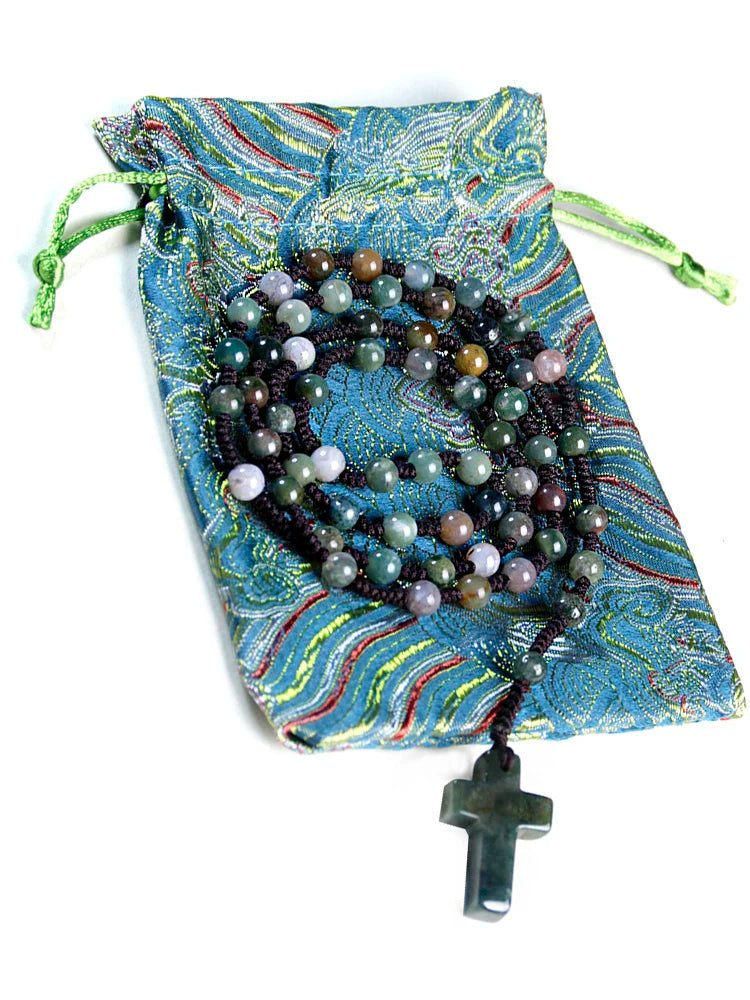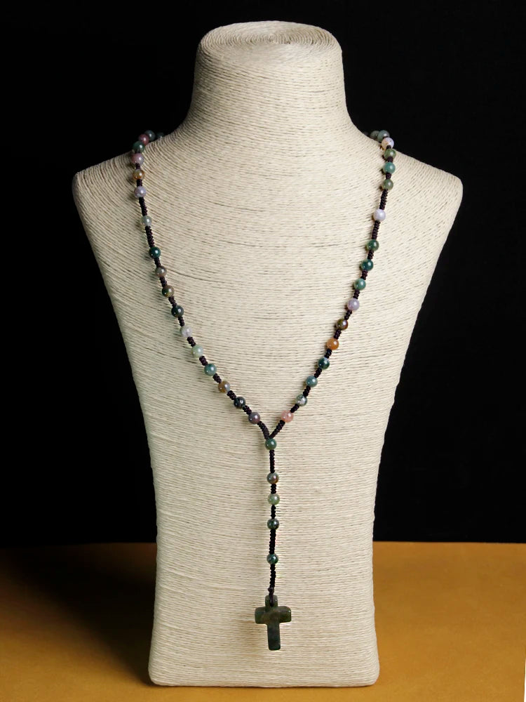 Natural Stone Indian agate Catholic Christ Rosary Necklaces Cross Pendant