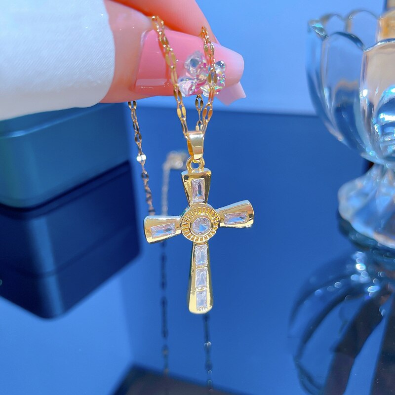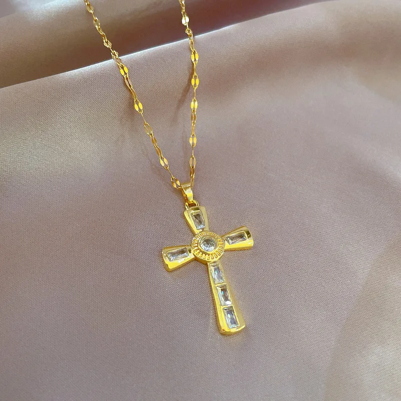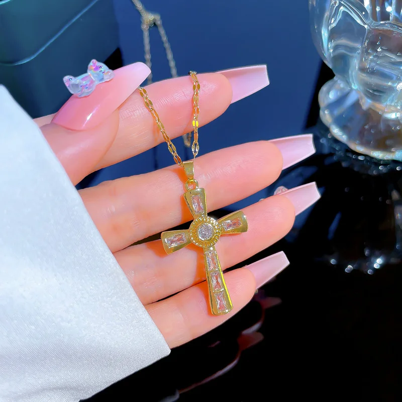 585 Gold Jewelry-Stainless Steel Necklaces Vintage Cross Pendants Chain Choker Jewellery Fashion Necklace For Women Goth Party Gifts