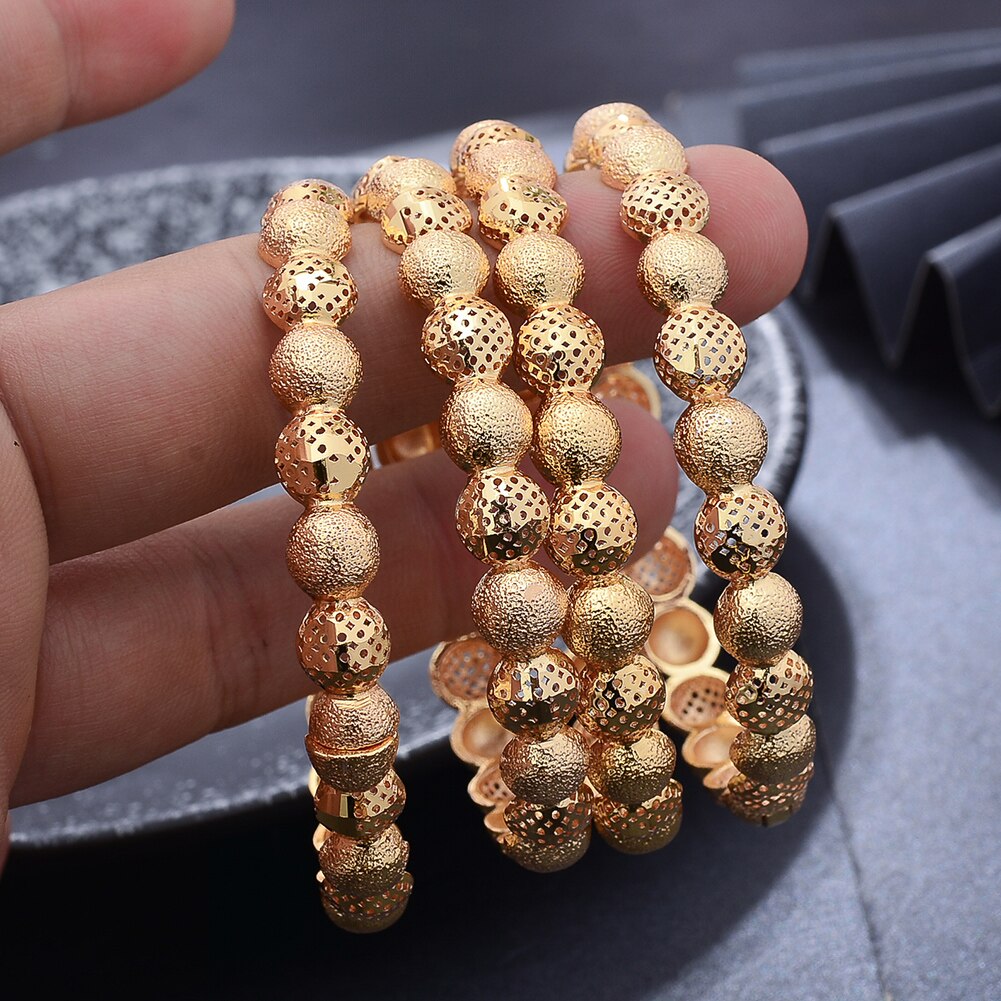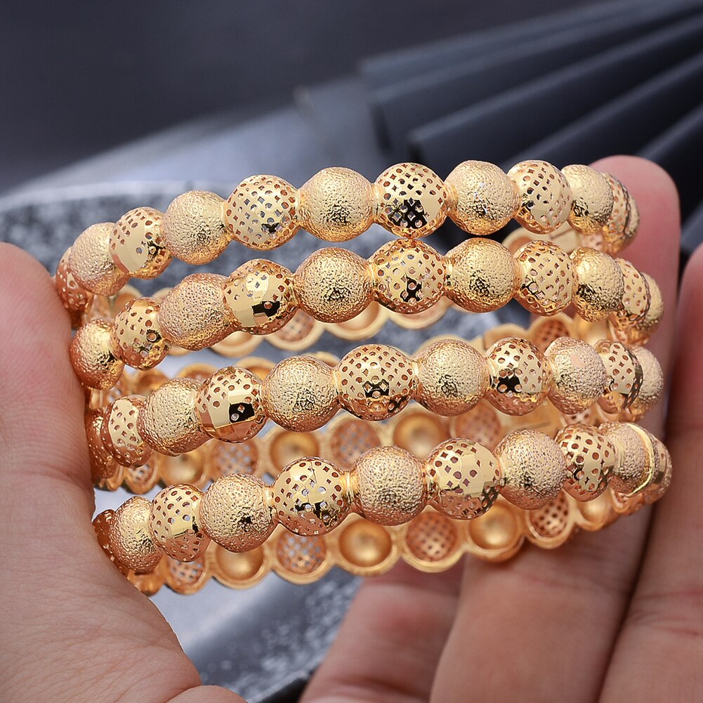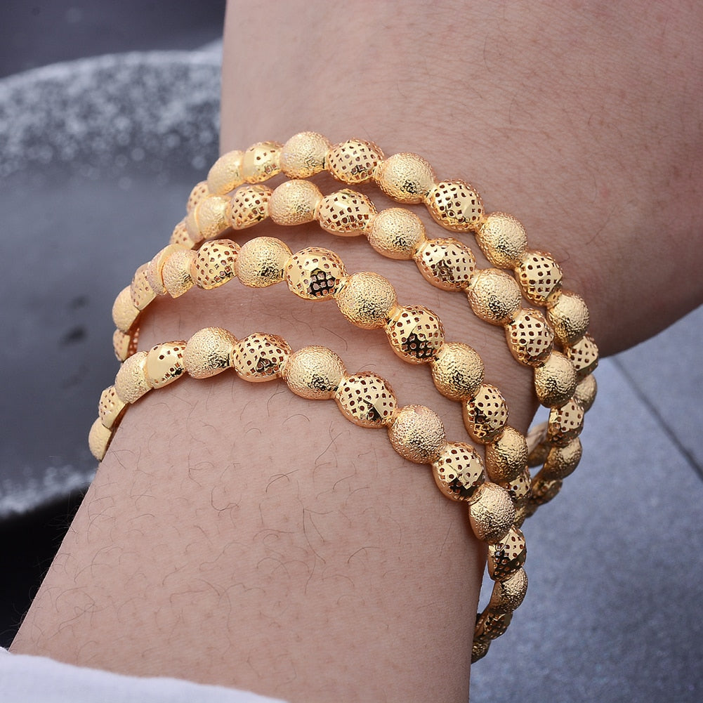 New 24K 4Pcs/lot Dubai Gold Color Bangles For Women Girls Round Beads Ethiopian Wedding Bangles