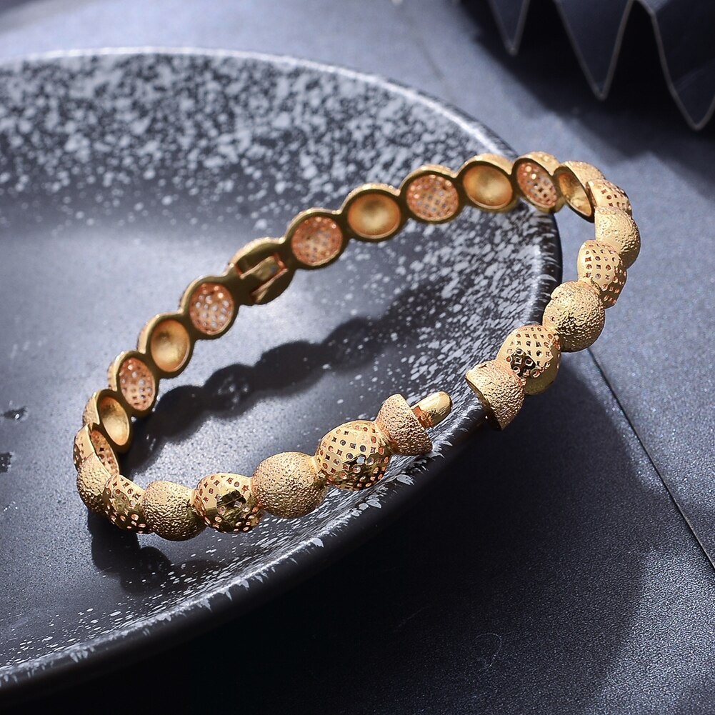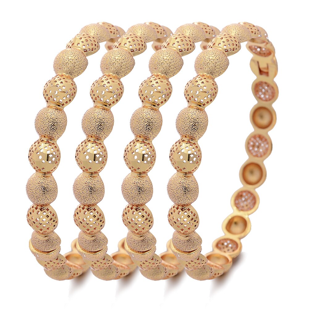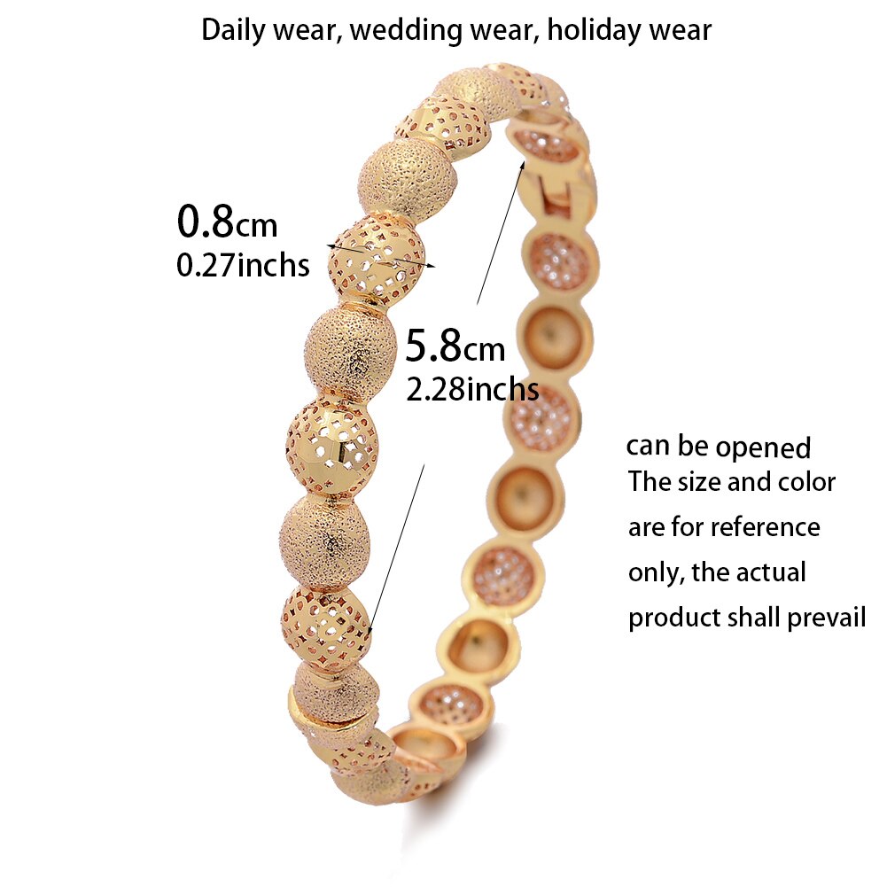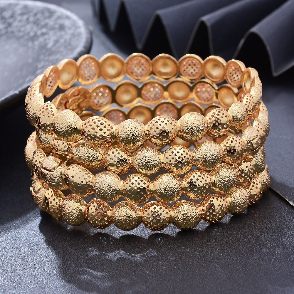 New 24K 4Pcs/lot Dubai Gold Color Bangles For Women Girls Round Beads Ethiopian Wedding Bangles