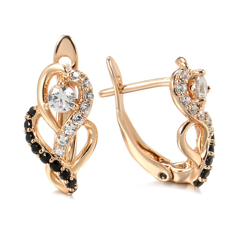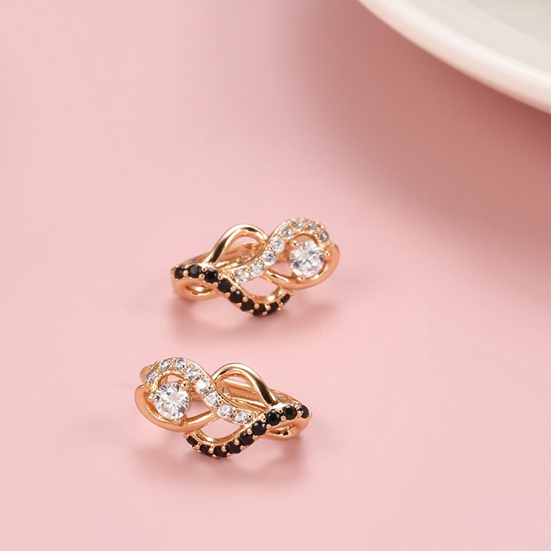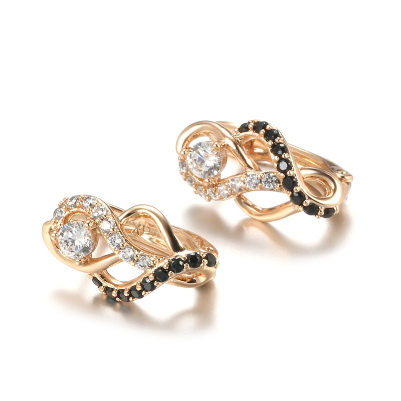 585 Gold Jewelry-New 585 Rose Gold Black Zircon Earrings Stones Cut Diamonds Snake Serpentine Dangle Earrings Piercing Wedding Women Fine Jewelry