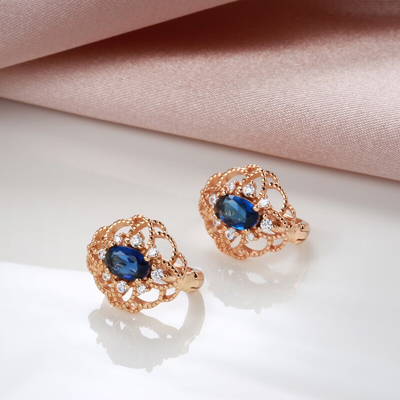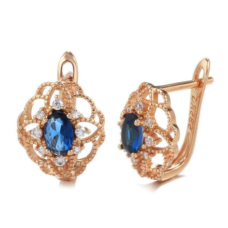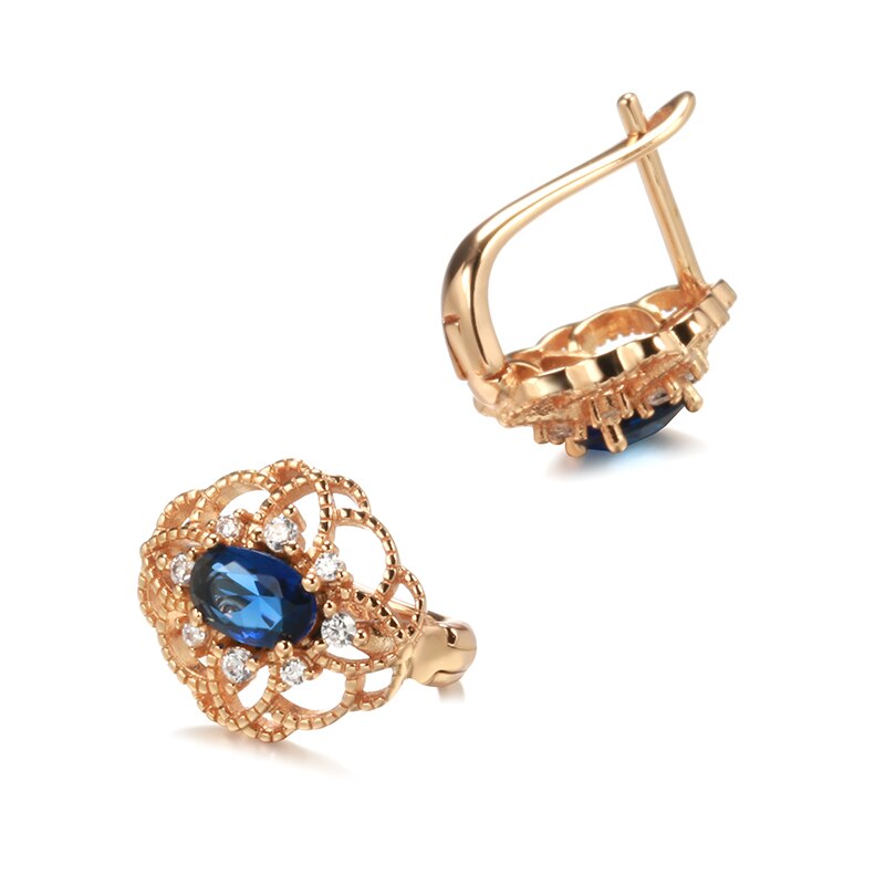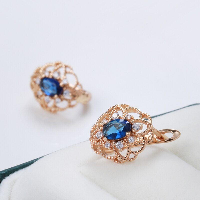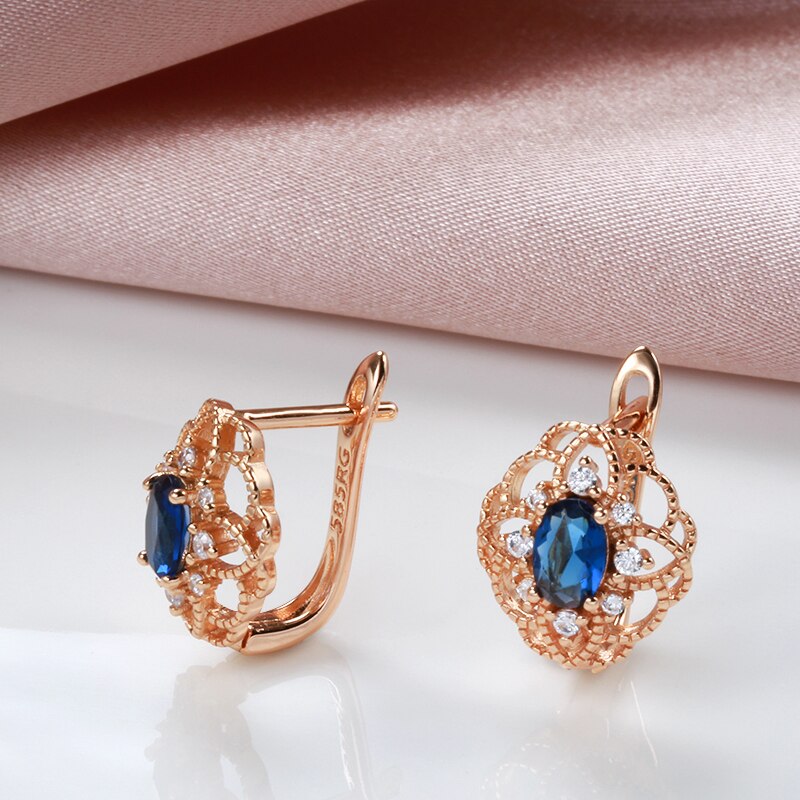 585 Gold Jewelry-New 585 Rose Gold Drop Earrings for Women Trend Blue Natural Zircon Romantic Hollow Flower Earrings Wedding Jewelry