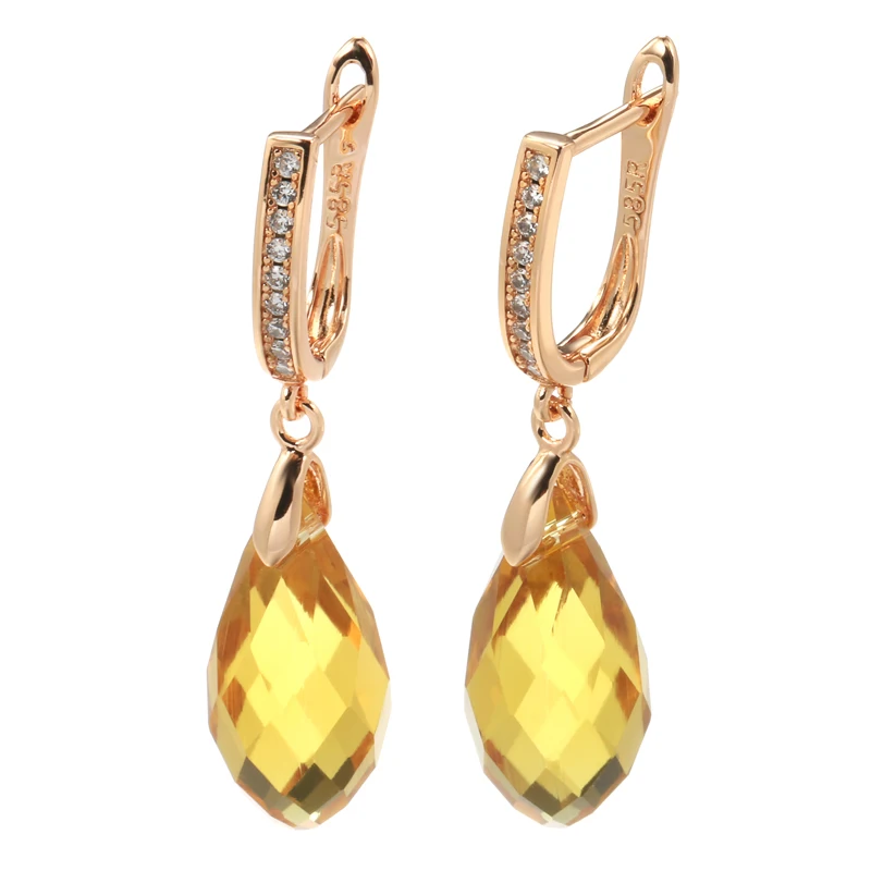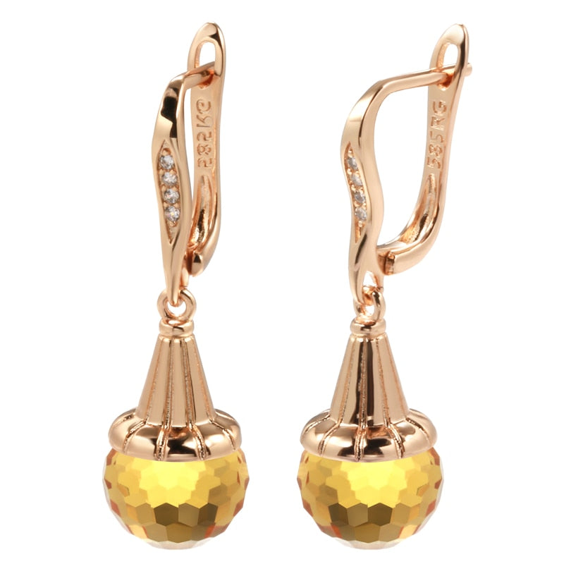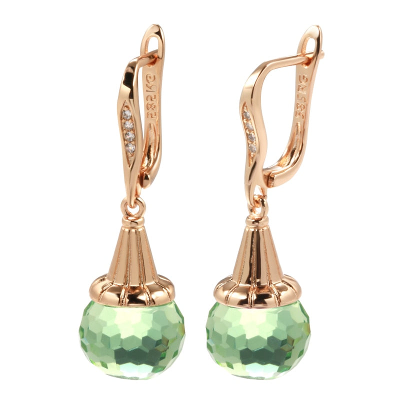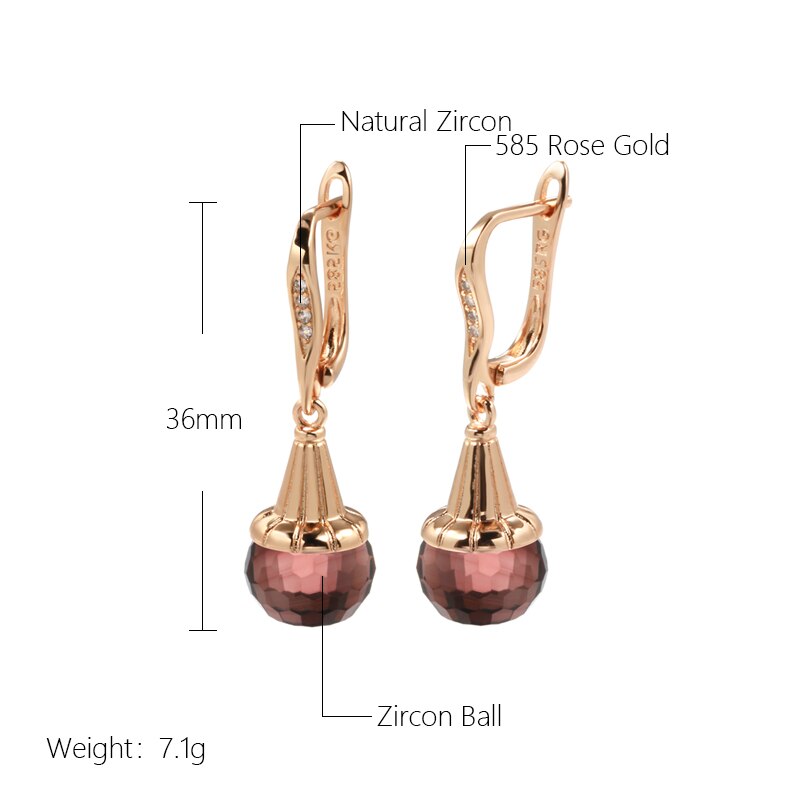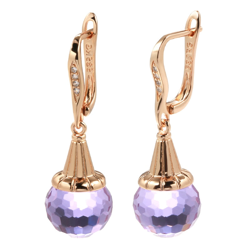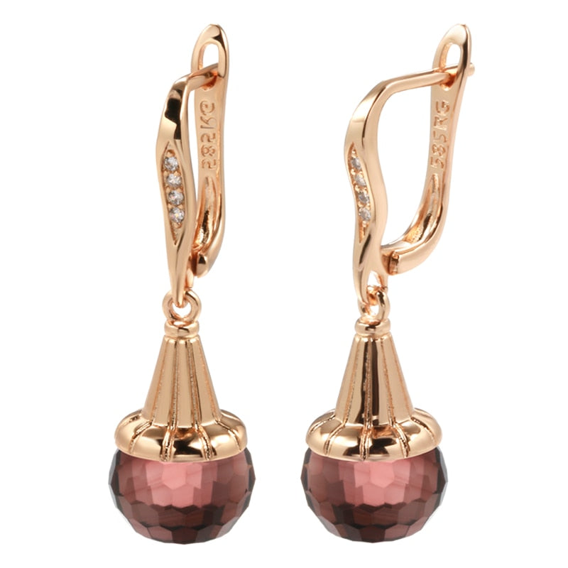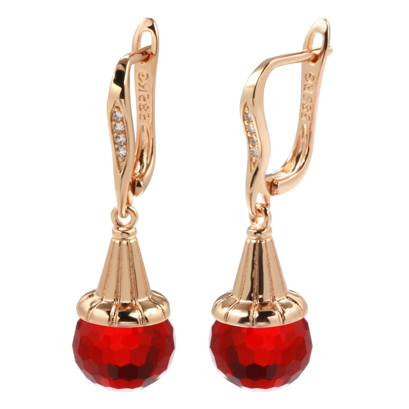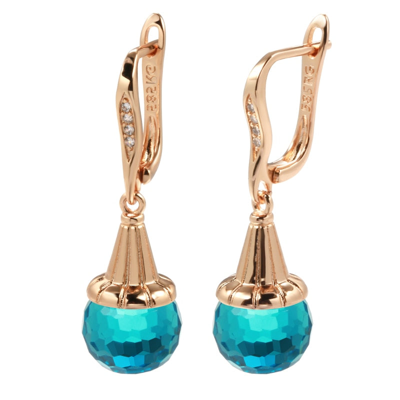 585 Gold Jewelry-New 585 Rose Gold Glass Ball Drop Earrings Deep Red Football Cut Blue Crystal Hang Ear Long Earrings Lady Party Unusual Jewelry
