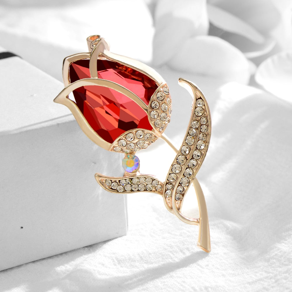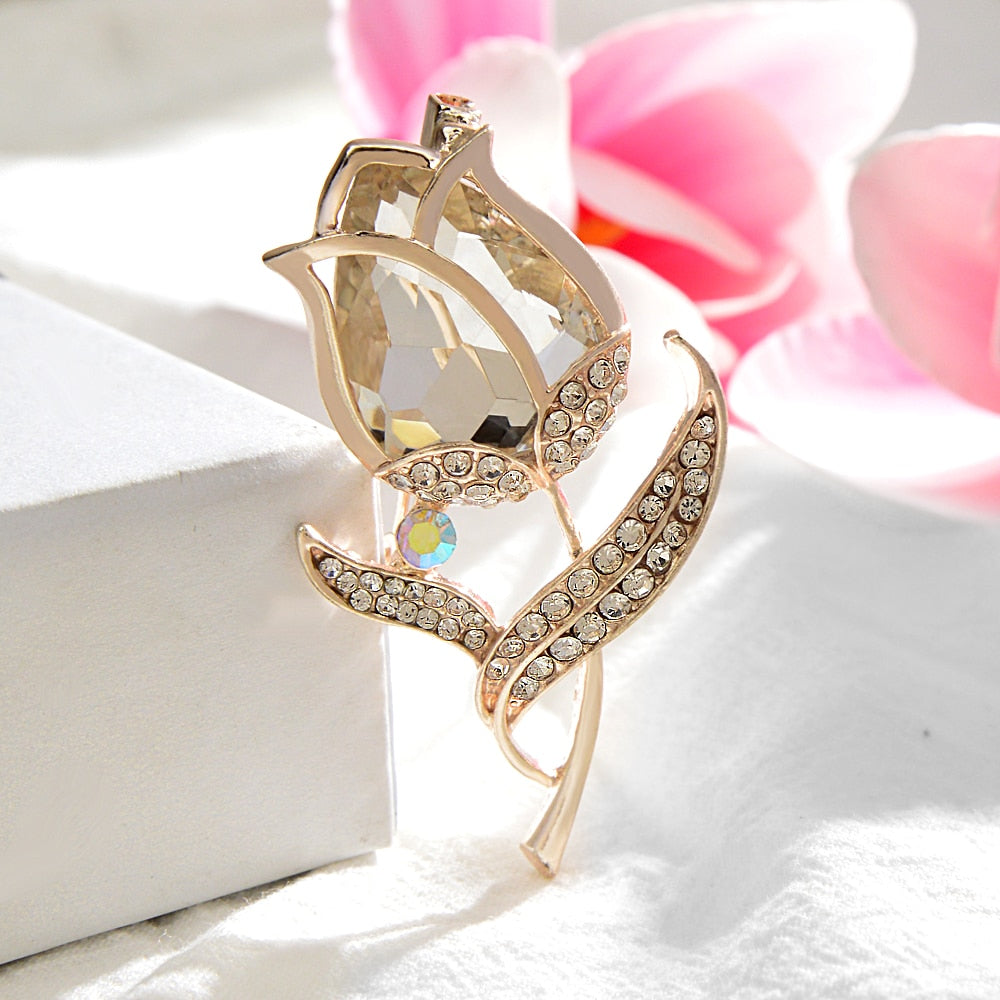 Brooches -New Arrival Classic Tulip Flower Brooch Winter Jewelry Wedding Coat Accessories 6 Colors Available