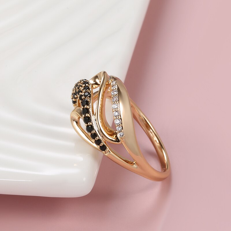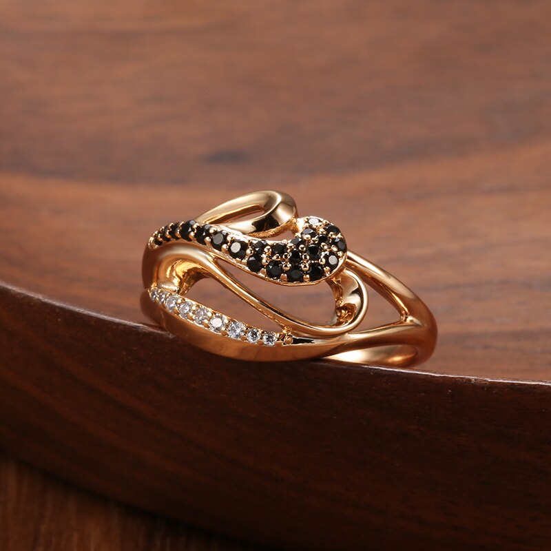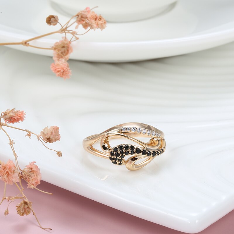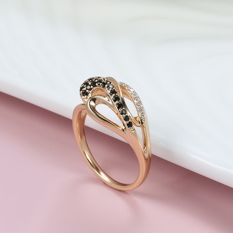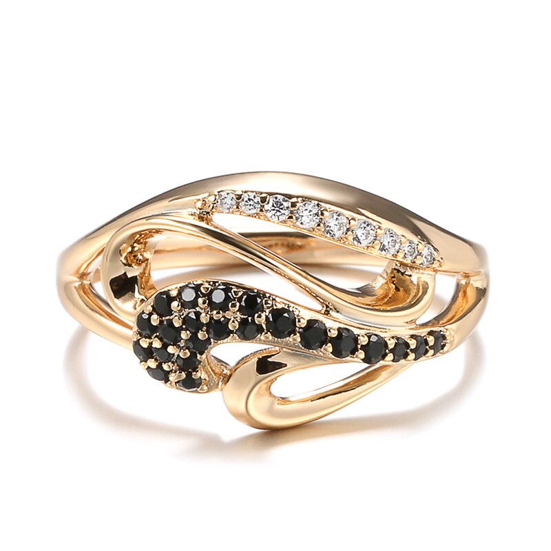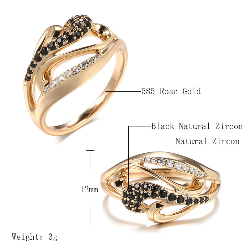 585 Gold Jewelry-New Black Zircon Gothic Rings For Women 585 Rose Gold Exquisite Hollow Luxury Circle Rings Party Jewelry Lady Unusual Rings