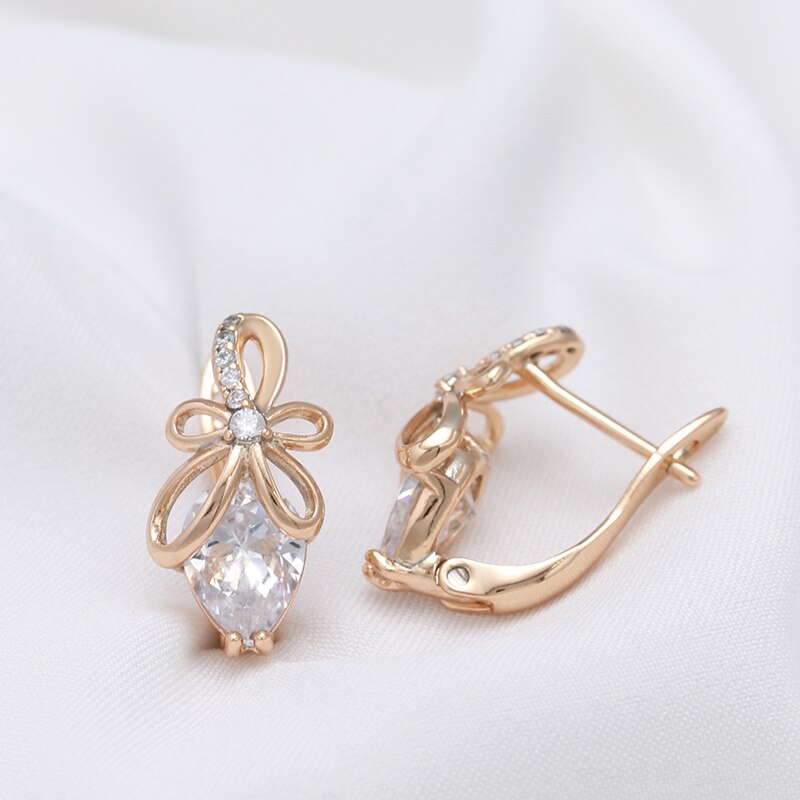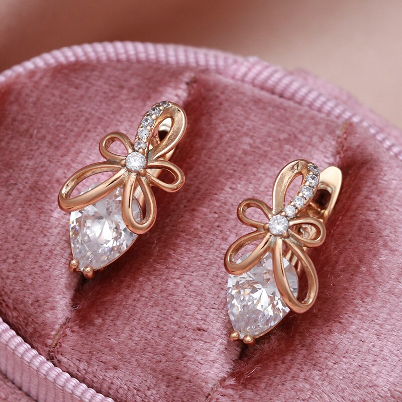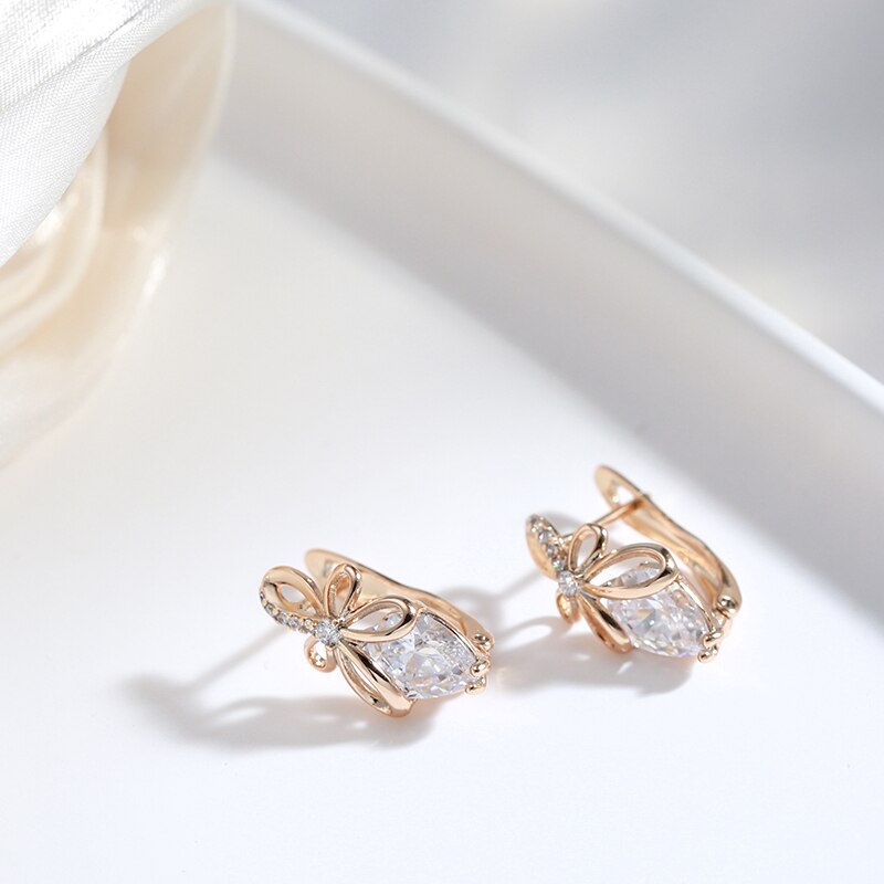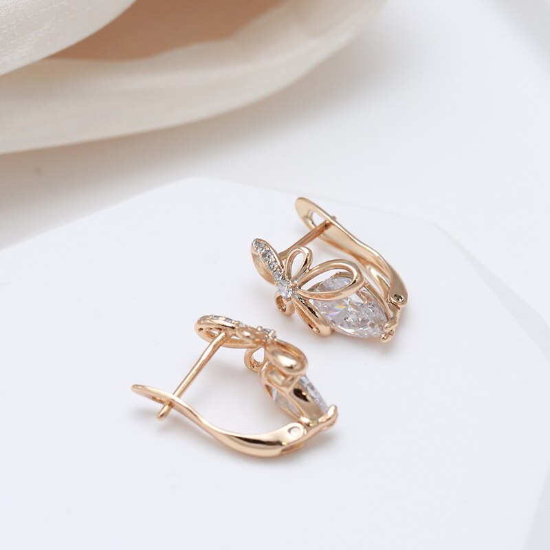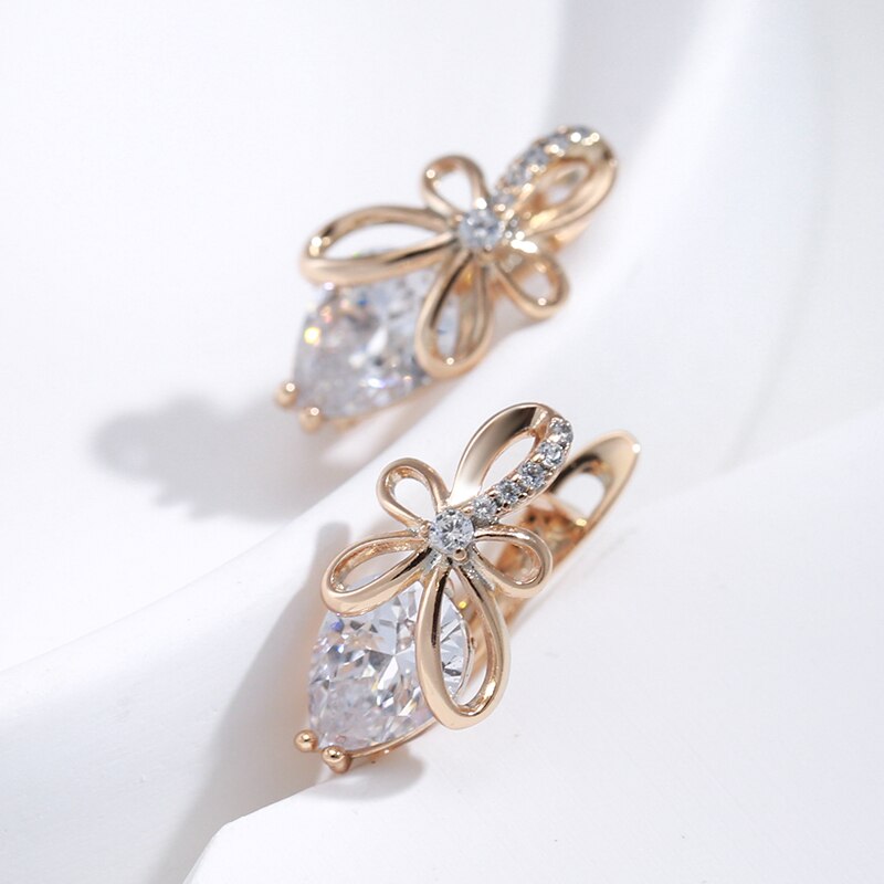 585 Gold Jewelry-New Bow Knot Hollow 585 Gold Women's Earrings Drop Cut Natural Zircon Trendy Jewelry Girl's Wedding Earring Lover Gifts