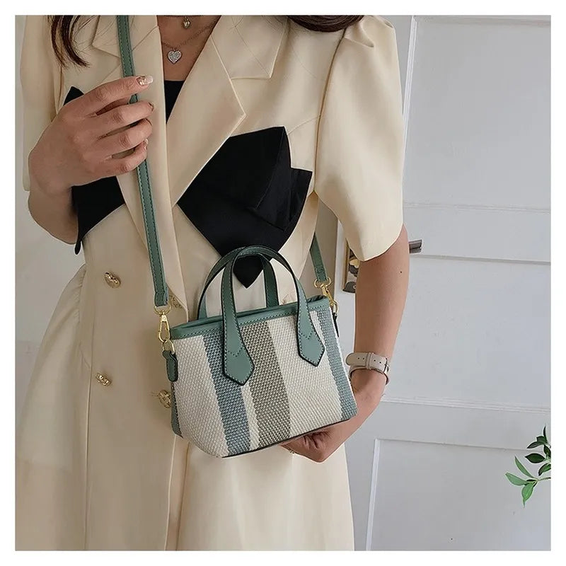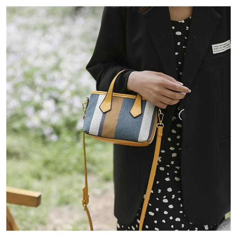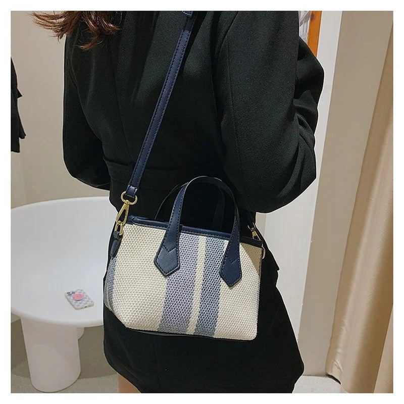 New Canvas Crossbody Shoulder Bag Striped Contrast Color Fashion Women's Handbags