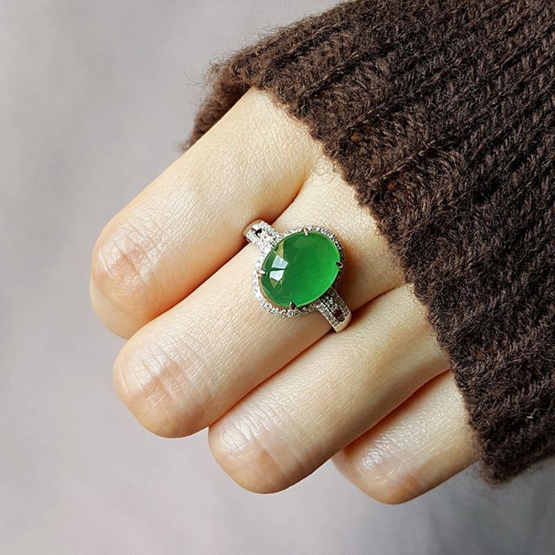 Cocktail Ring-New Classic Natural Hotan Jade oval rings for women Light Luxury Inlaid Crystal Fashion Wedding Jewelry Gift Adjustable
