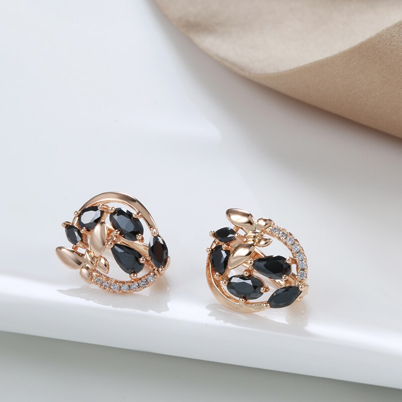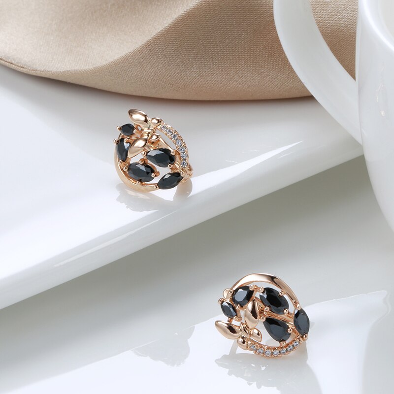 585 Gold Jewelry-New Dark Hollow Butterfly Piercing Earrings Inlay Geometric Black Zircon Edge Diamond Cool Party Trendy Earrings Golden Jewelry