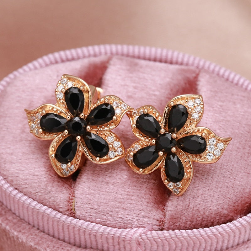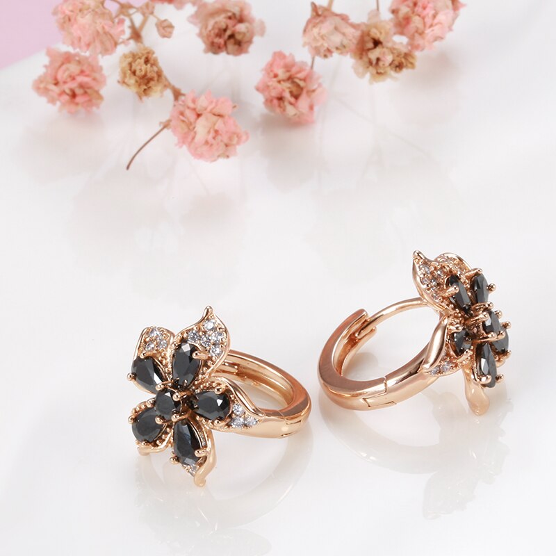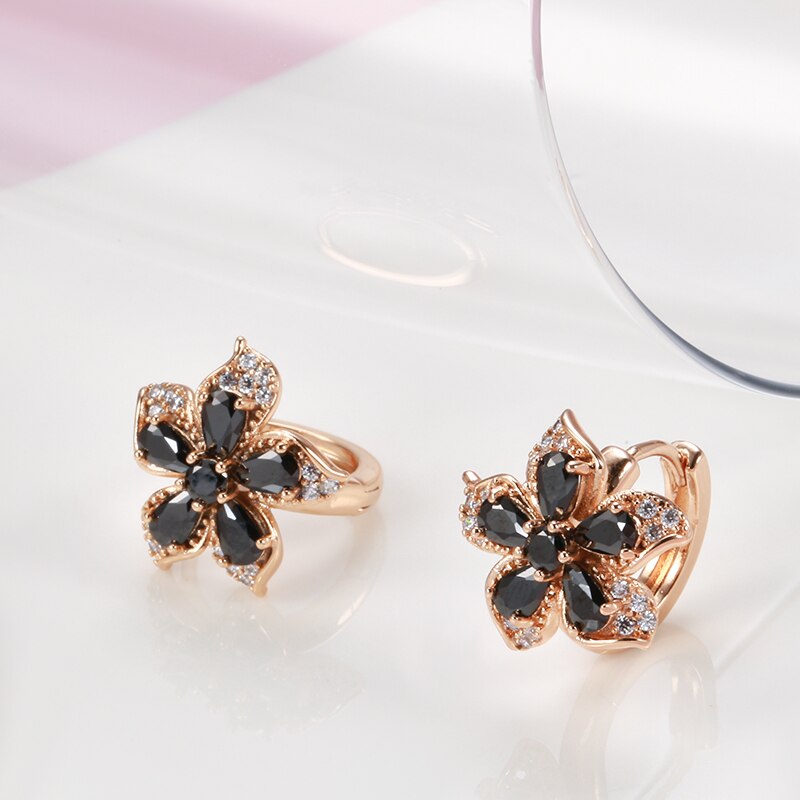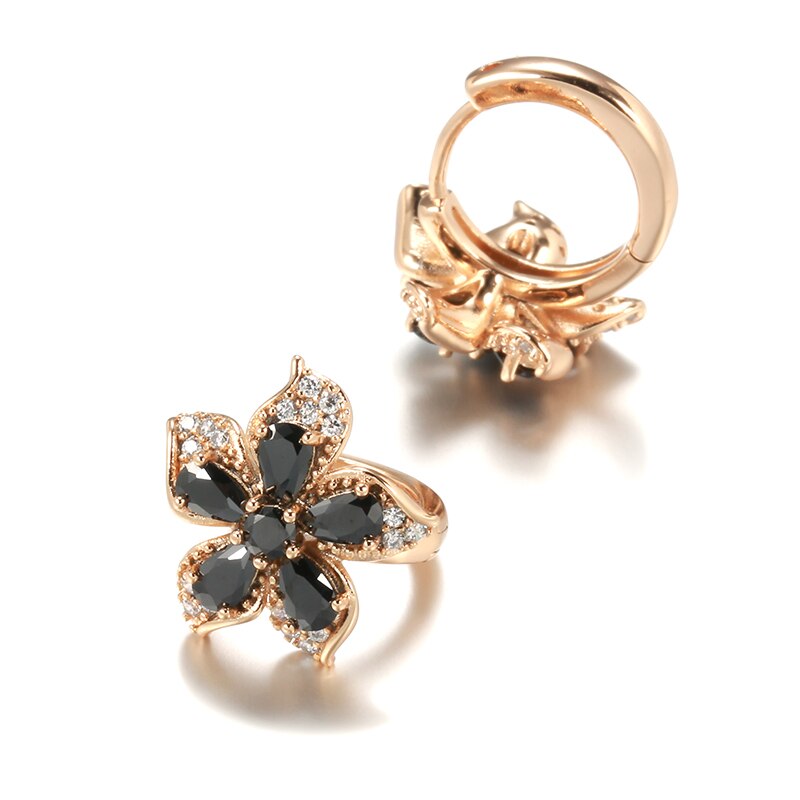 585 Gold Jewelry-New Dark Zircon Flower Earrings 585 Gold Charm Hoops Inlay Crystal Round Piercing Climber Earrings Fashion Jewelry Fine Earrings