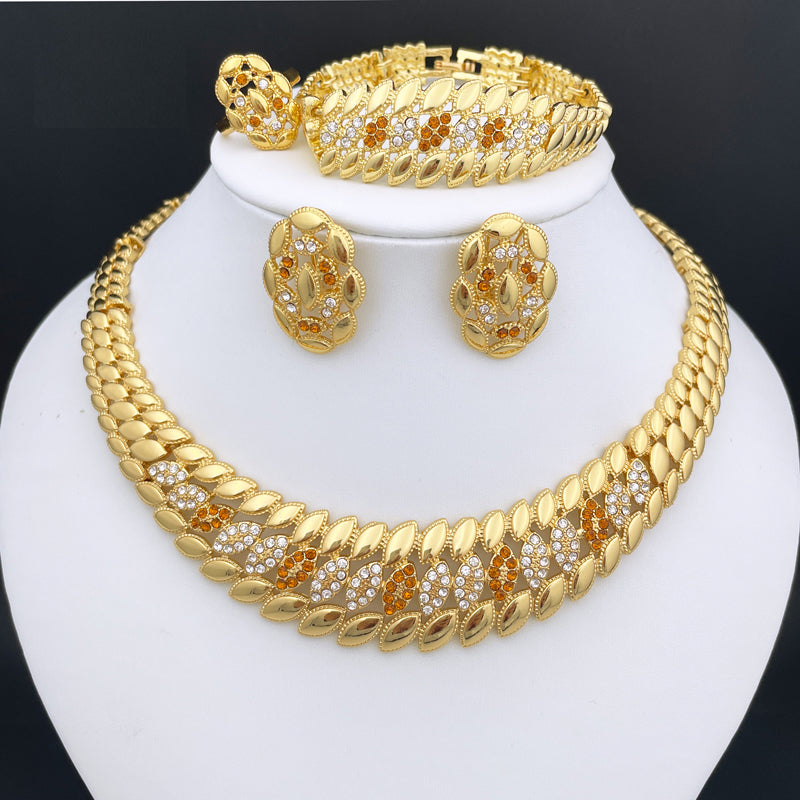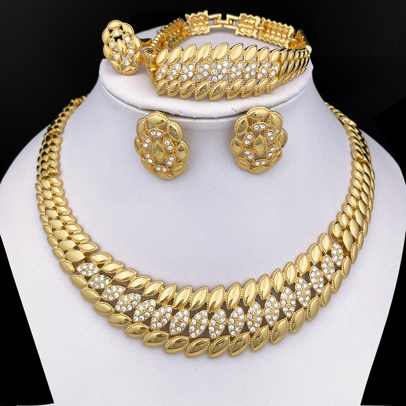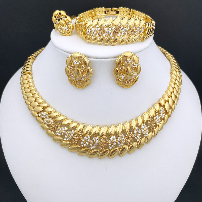 New Design Brazil Gold Color Jewelry For Women Dubai Fashion Necklace Earrings Ring Bracelet Set