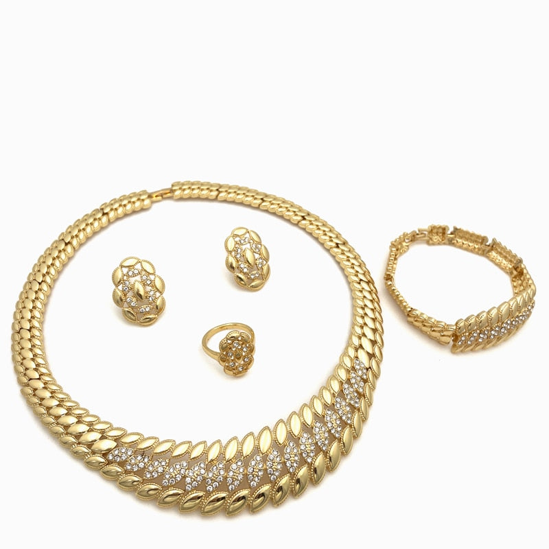 Afraic Jewelry -Brazil Gold Color Jewelry Sets For Women Dubai Fashion Necklace Earrings Ring Bracelet Set Bride Wedding Party Gift