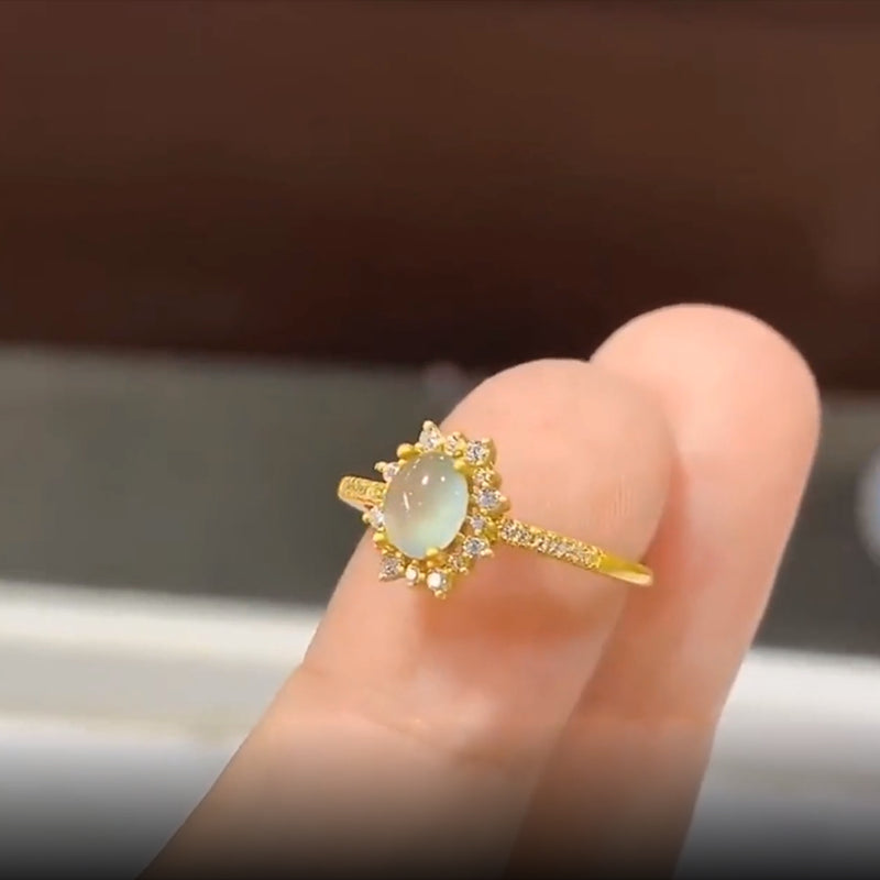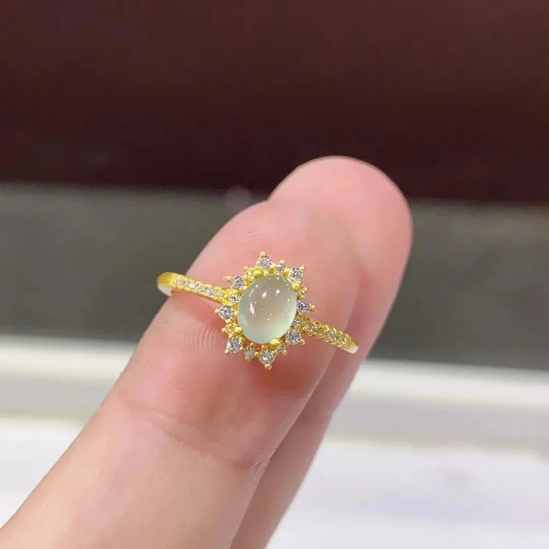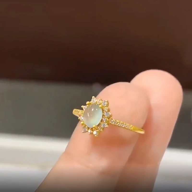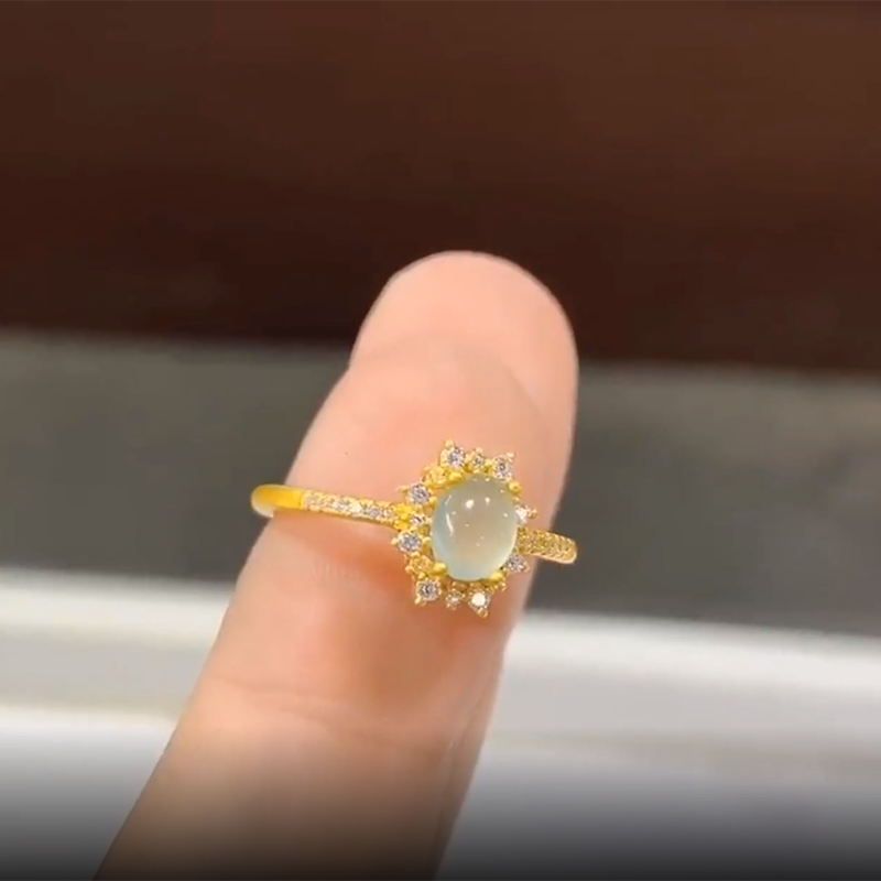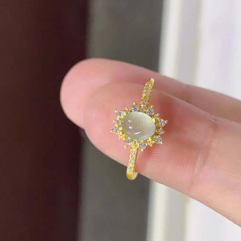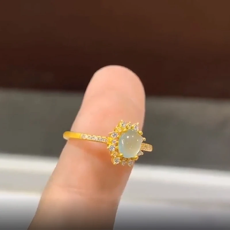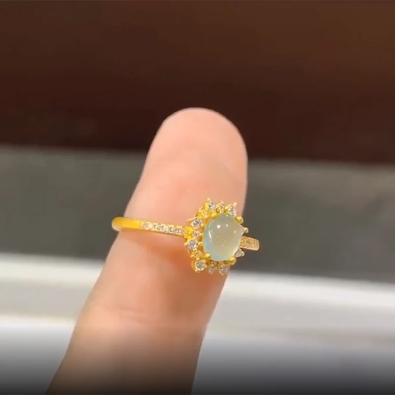 Cocktail Ring-New Design Diamond Natural Chalcedony Egg Round Opening Adjustable Ring Elegant Charm Creative Vintage Silver Jewelry