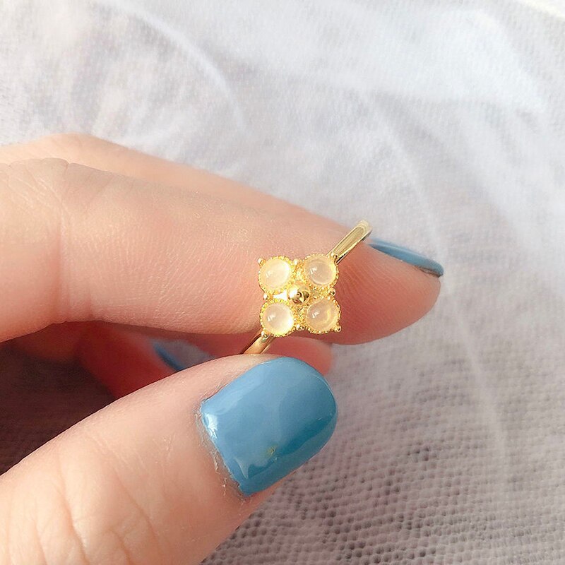 Cocktail Ring-New design natural high ice chalcedony rose gold chalcedony open adjustable ring noble charm female silver jewelry