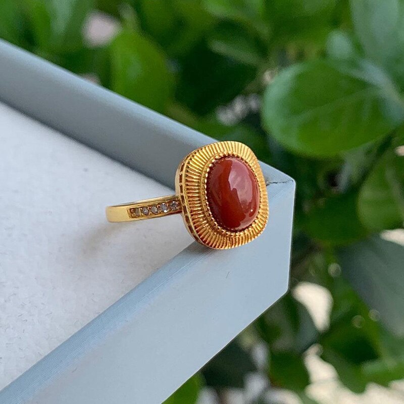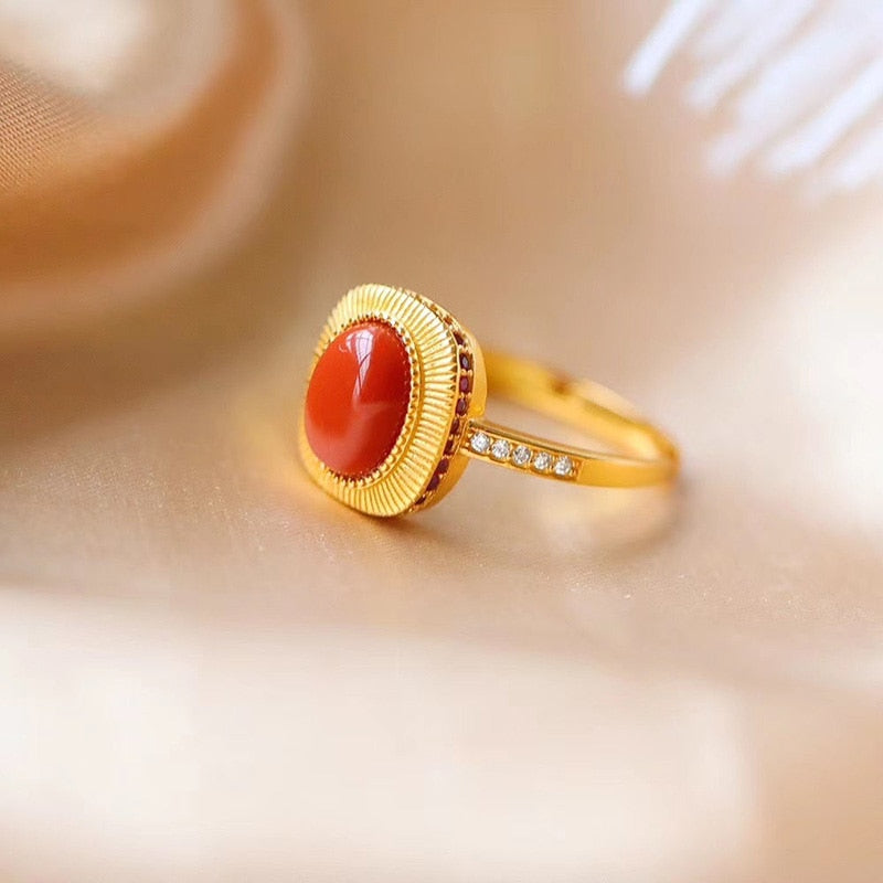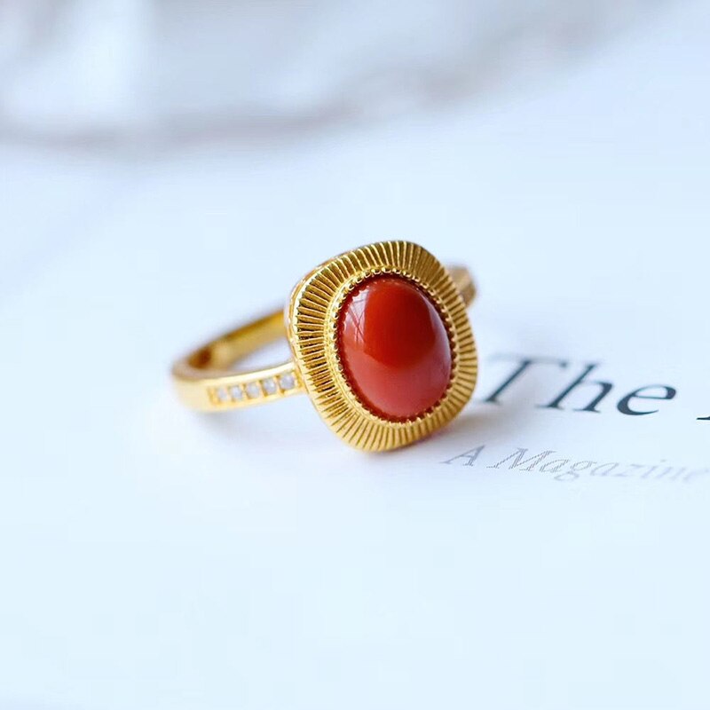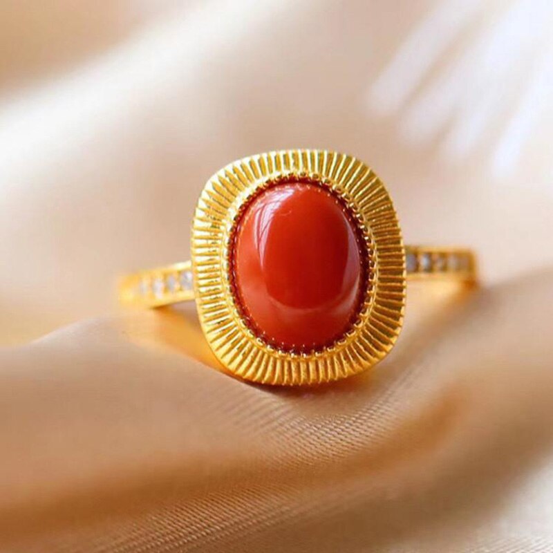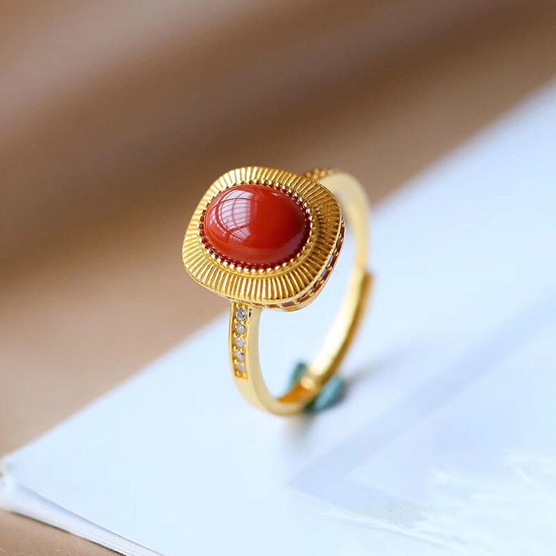 Cocktail Ring-New diamond-studded southern red tourmaline oval ring opening adjustable Chinese palace style retro ladies jewelry accessories