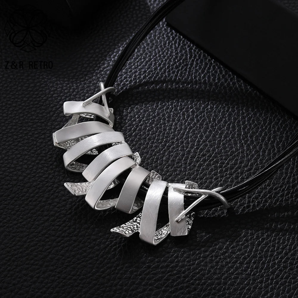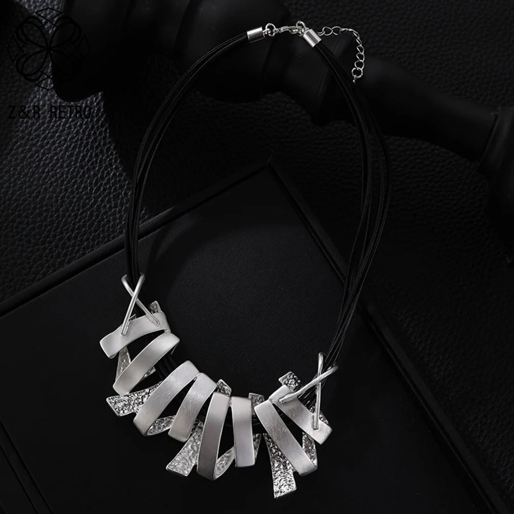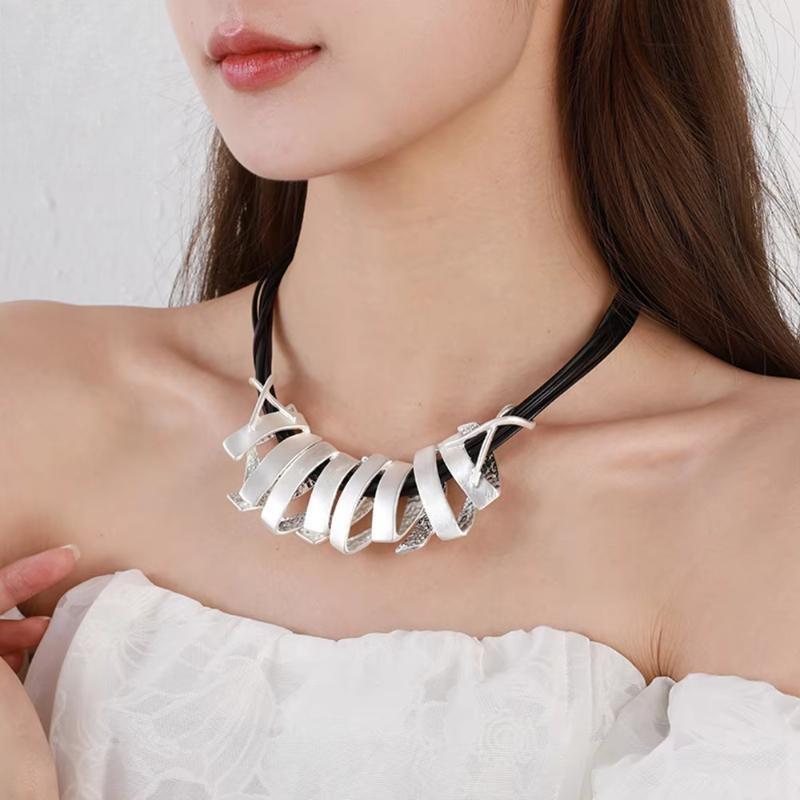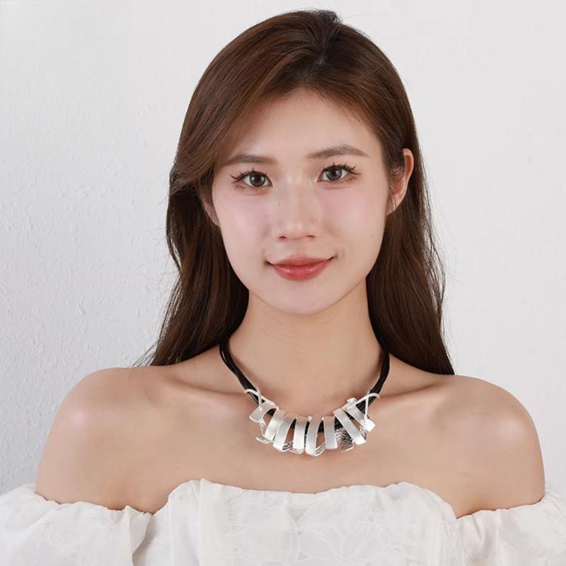 New Fashion Geometric Choker Necklace for Women Trendy Silver Color Suspension Pendants