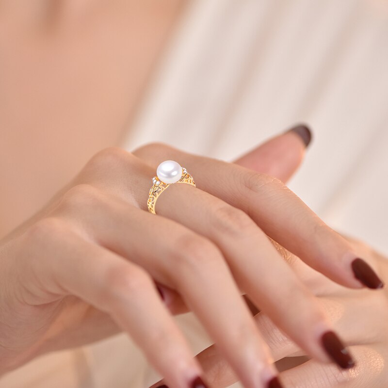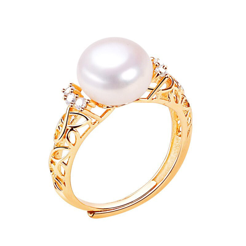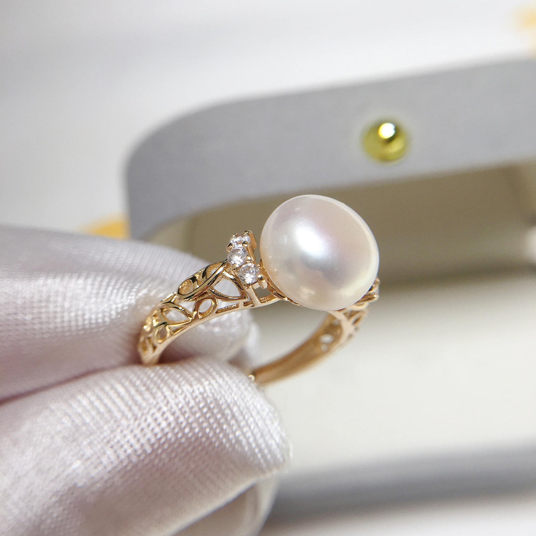 Pearl Rings-New Fine Pearl Ring 100% Real Natural Freshwater Pearl Design Ring for Femme 18K Gold Plating Women Jewelry Ring Gift