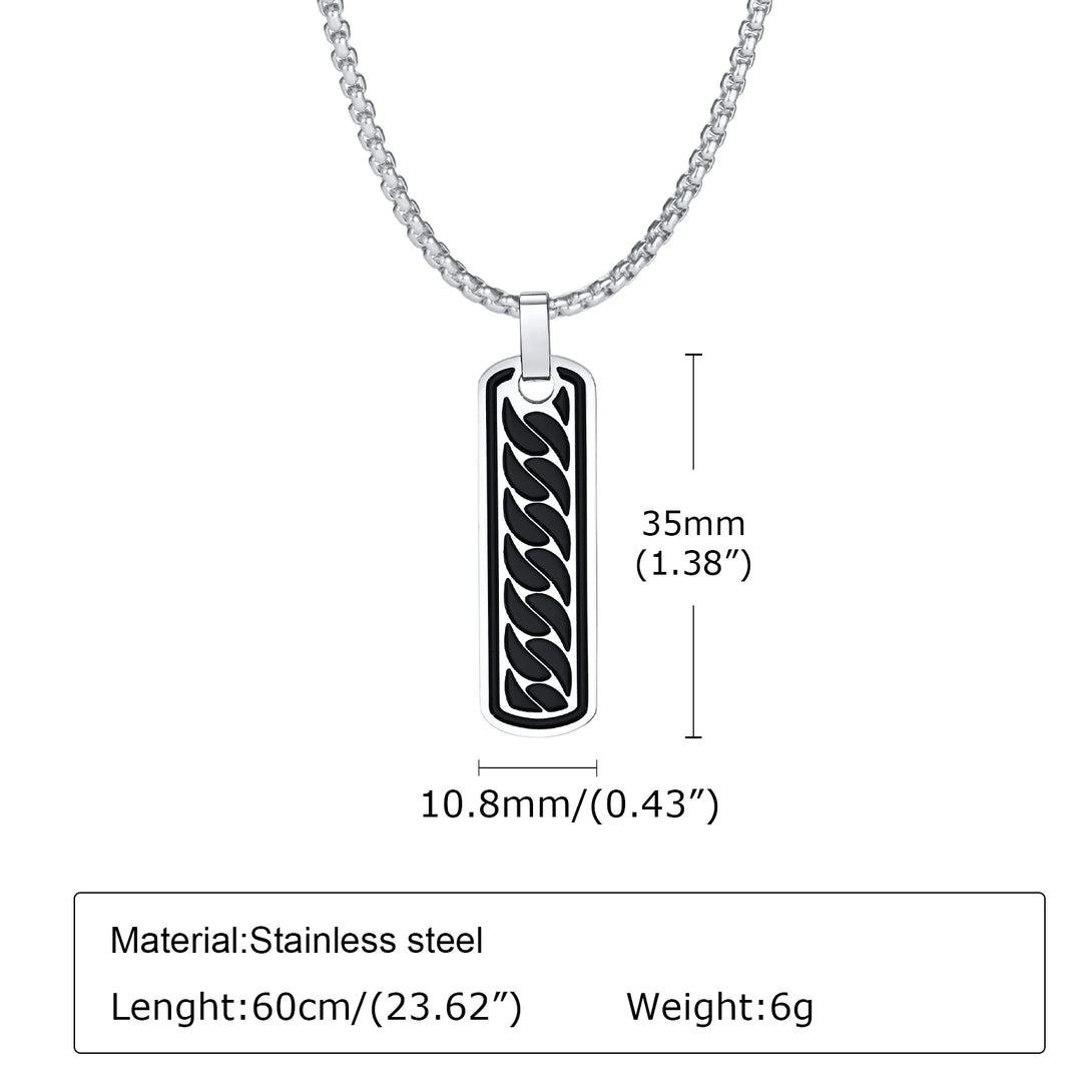 New Geometric Bar Mens Necklaces, Waterproof Stainless Steel Vertical Rectangle Pendant with Cuban Texture Boys Collar Jewelry