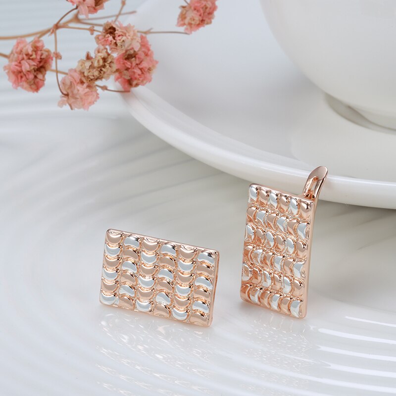New Geometric Clip Earrings 585 Rose Gold Plated Silver Sequins Pendant Pierced Earrings