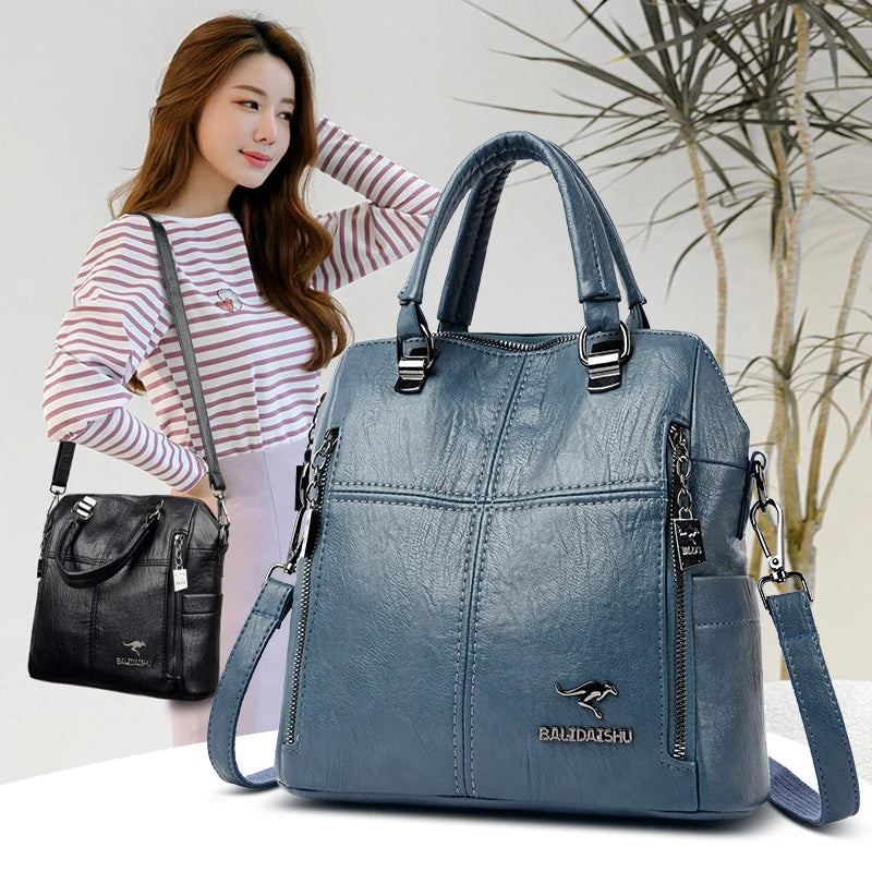New High Quality Leather Backpack Women Shoulder Bags Multifunction Travel Backpack School Bags for Girls Bagpack Bags