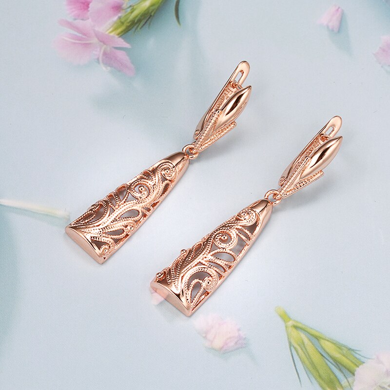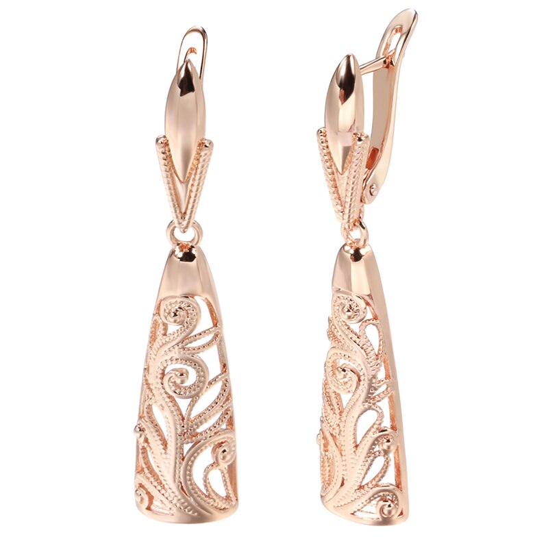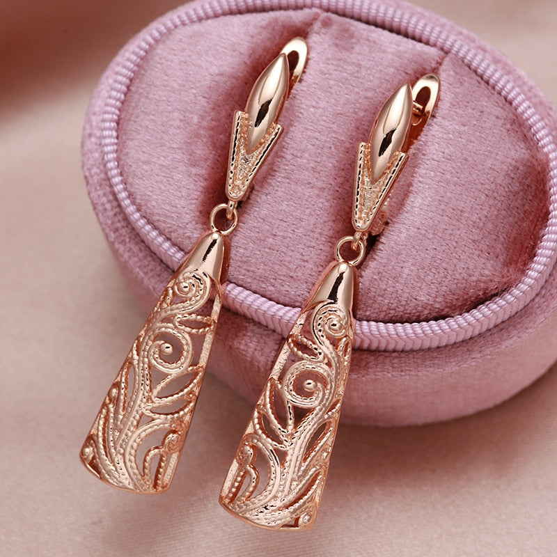 585 Gold Jewelry-New Hollow Twist Spindle Pendant 585 Gold Women's Earrings Fashion Vintage Earrings Jewelry Girl's Elegant Wedding Earrings
