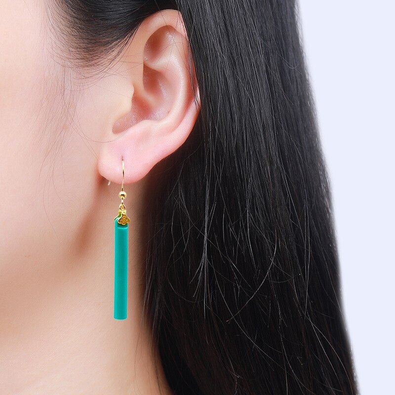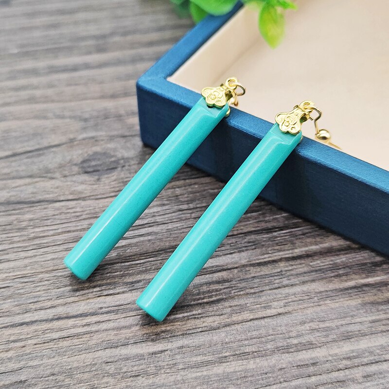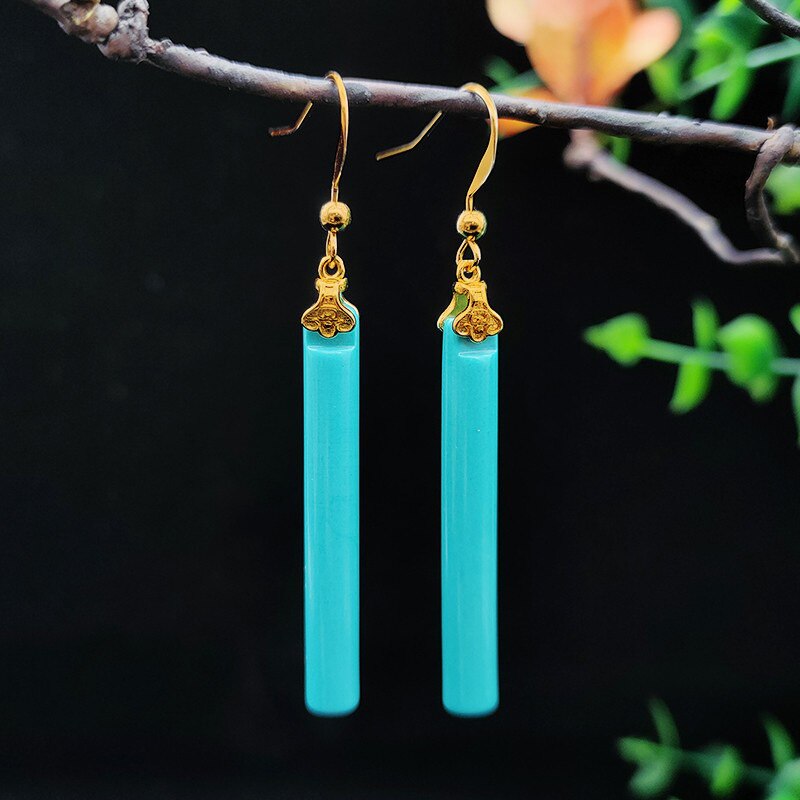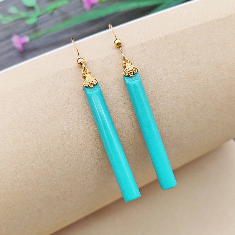 Drop Earrings-New in fashionable turquoise long earrings for women Unique elegance and shiny charm banquet wedding jewelry Simple Eardrop