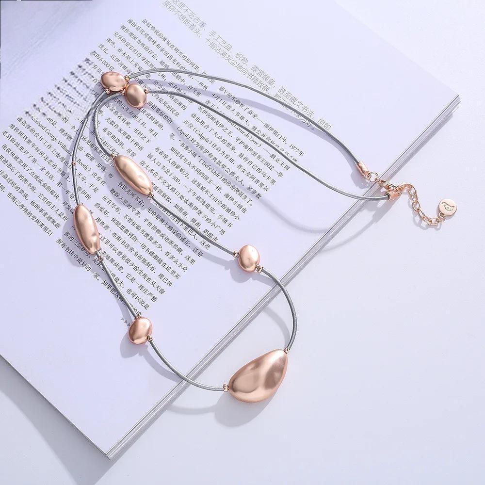 New in Rose Gold Color Hollow Long Chains Necklace Suspension Collar Pendants Korean Fashion Jewelry for Women Trend Accessories
