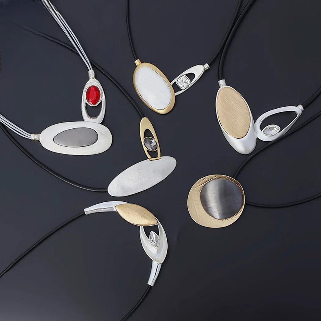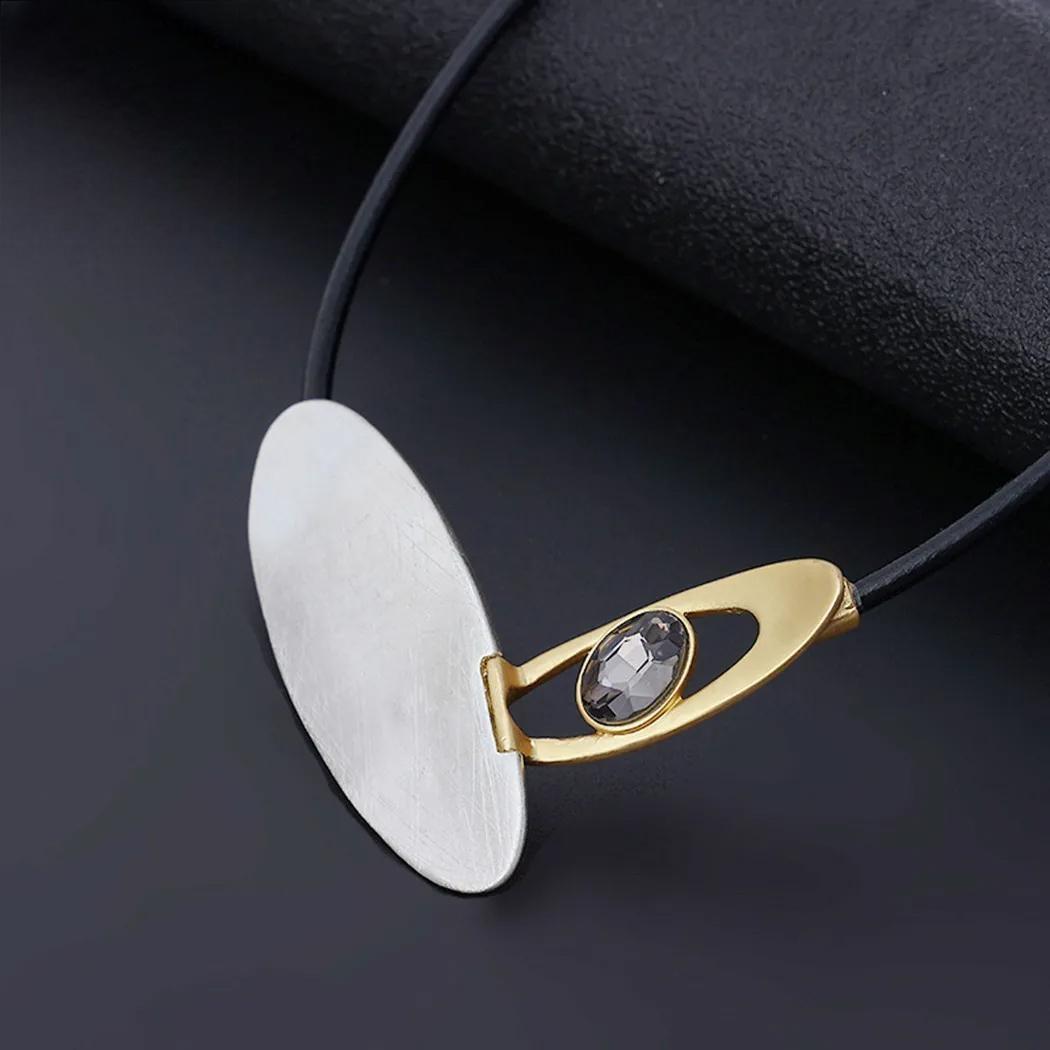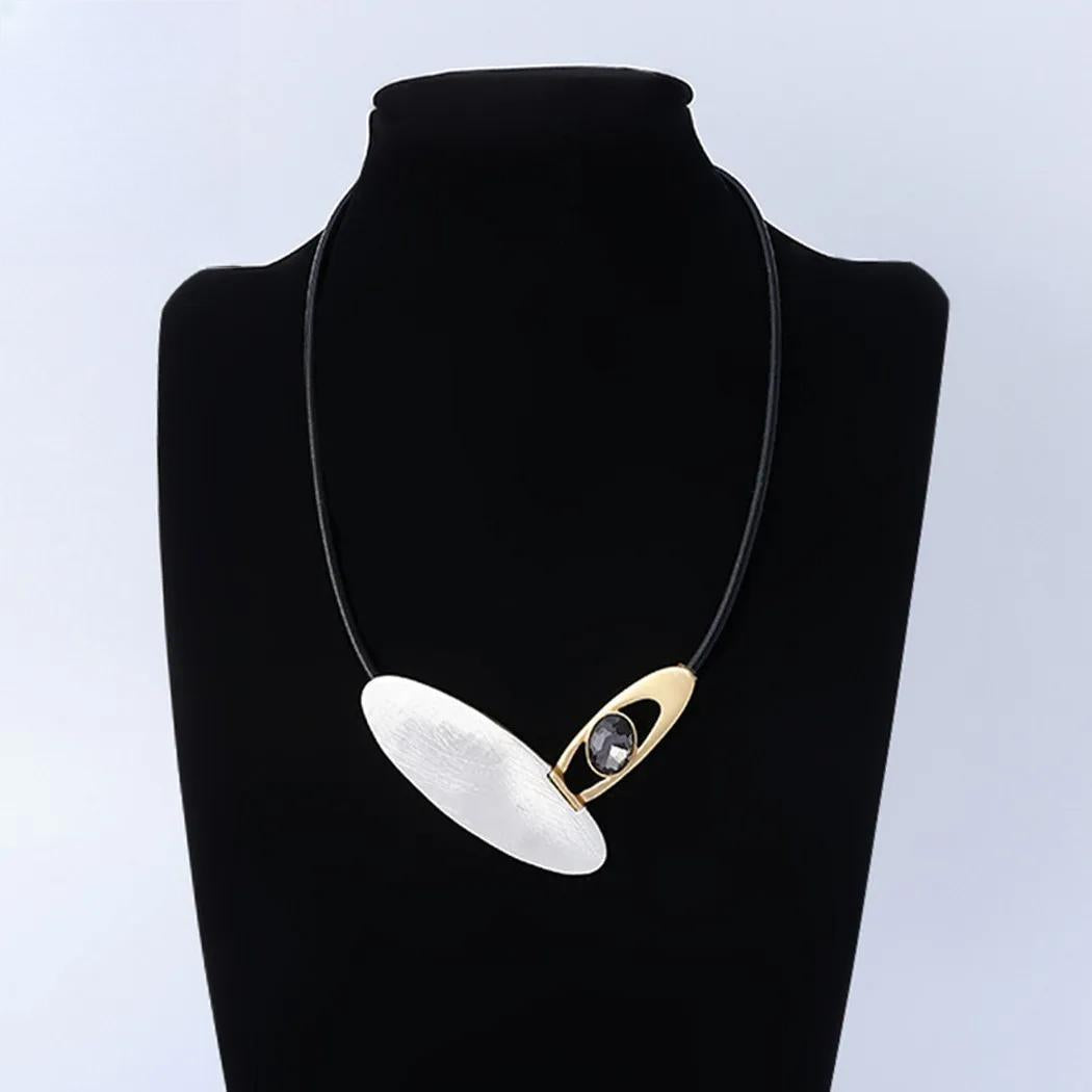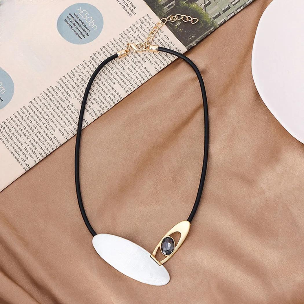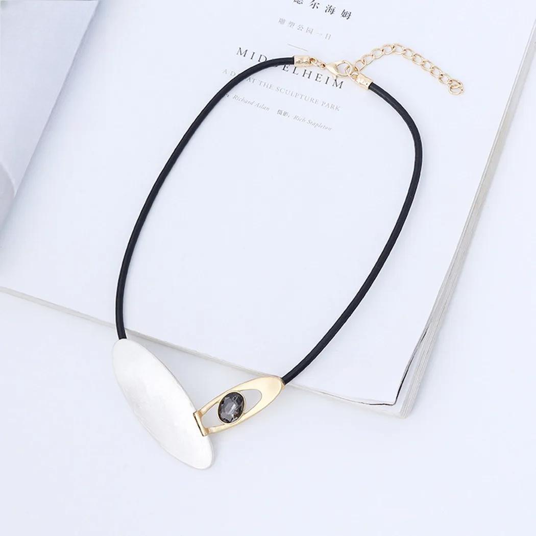 New in Vintage Geometric Alloy Collare Kpop Necklace with Crystal Bead Trend Long Chains