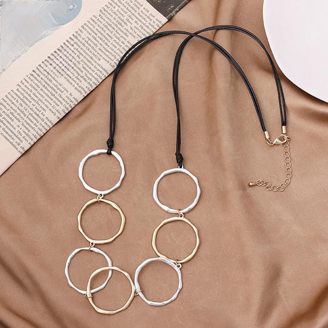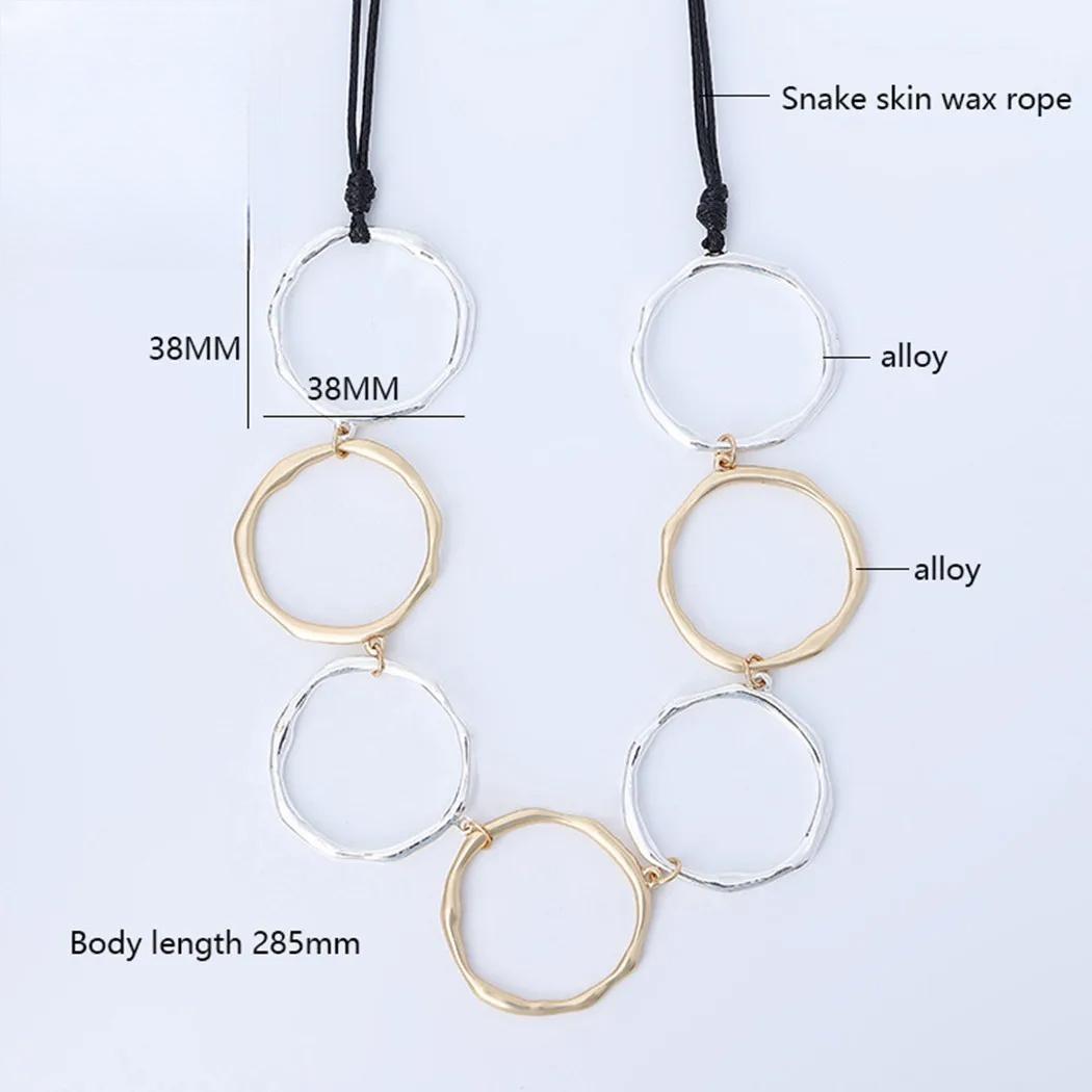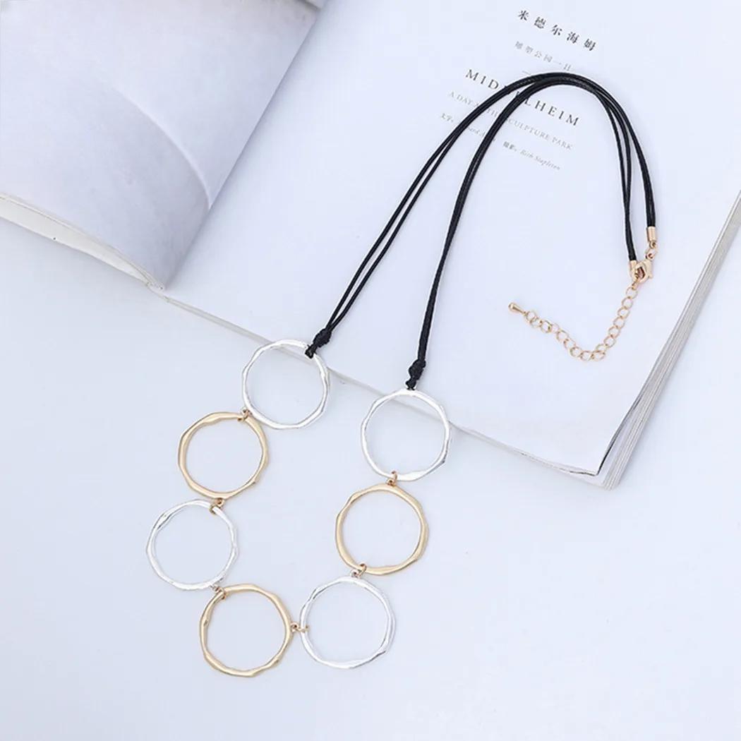 New in Vintage Round Circles Long Chains Around the Neck Collares Necklace for Women