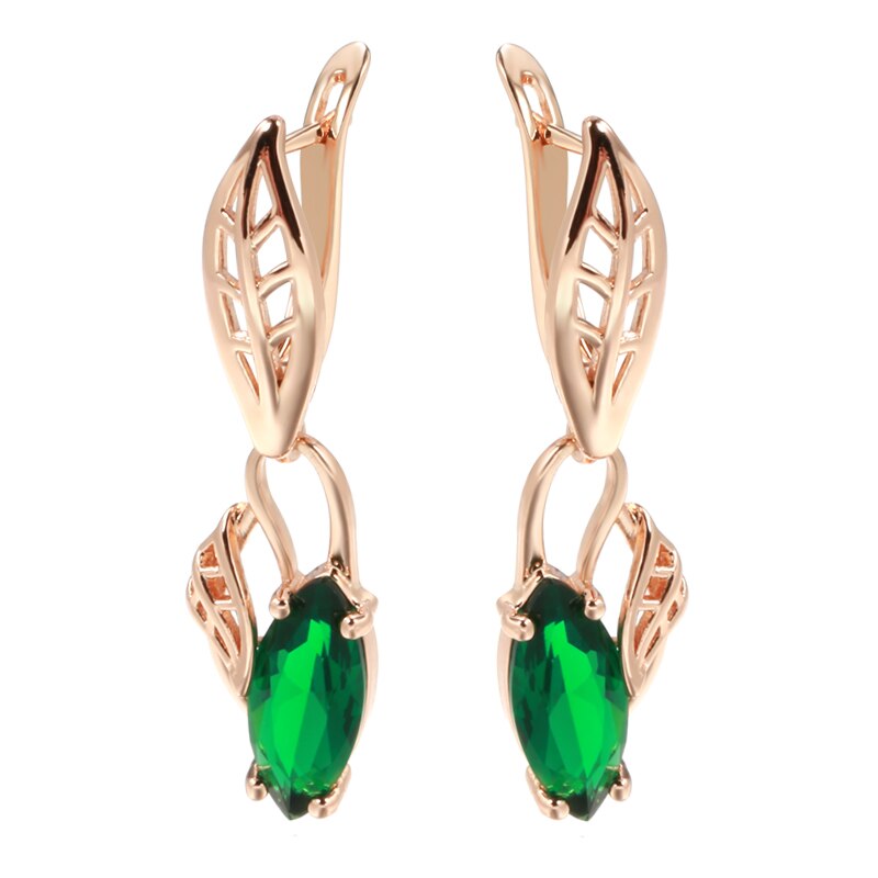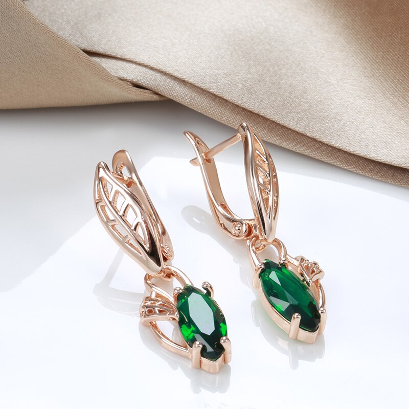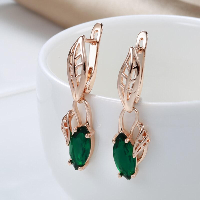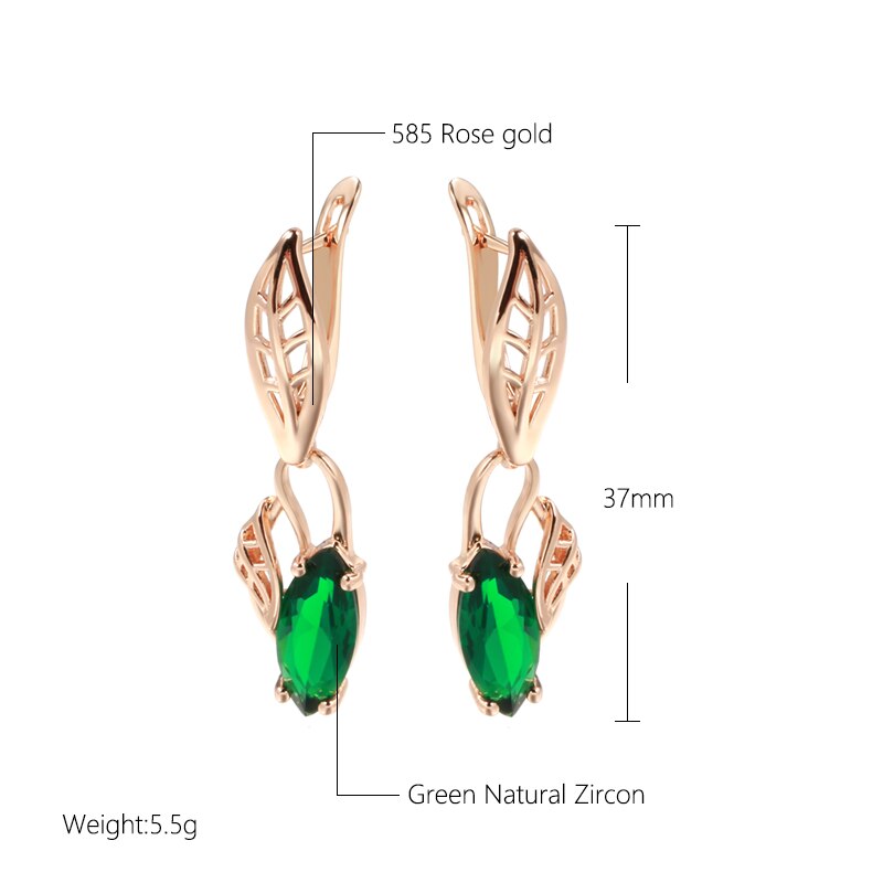 585 Gold Jewelry-New Leaf Elegant Long Drop Earrings For Women 585 Rose Gold Emerald Geometric Zircon Earrings Party Vintage Trend Lady Jewelry