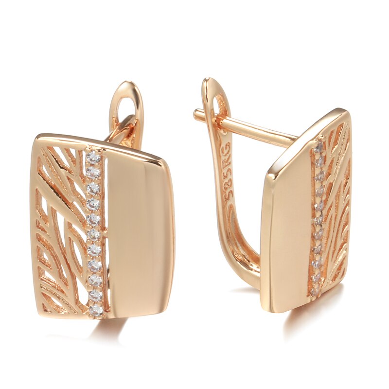 585 Gold Jewelry-New Luxury Big Drop Earrings 585 Rose Gold With Natural Zircon Bridal Earrings Vintage Wedding Jewelry Fashion Women Gift