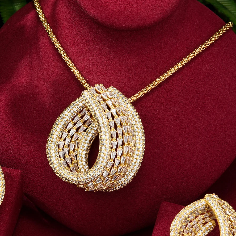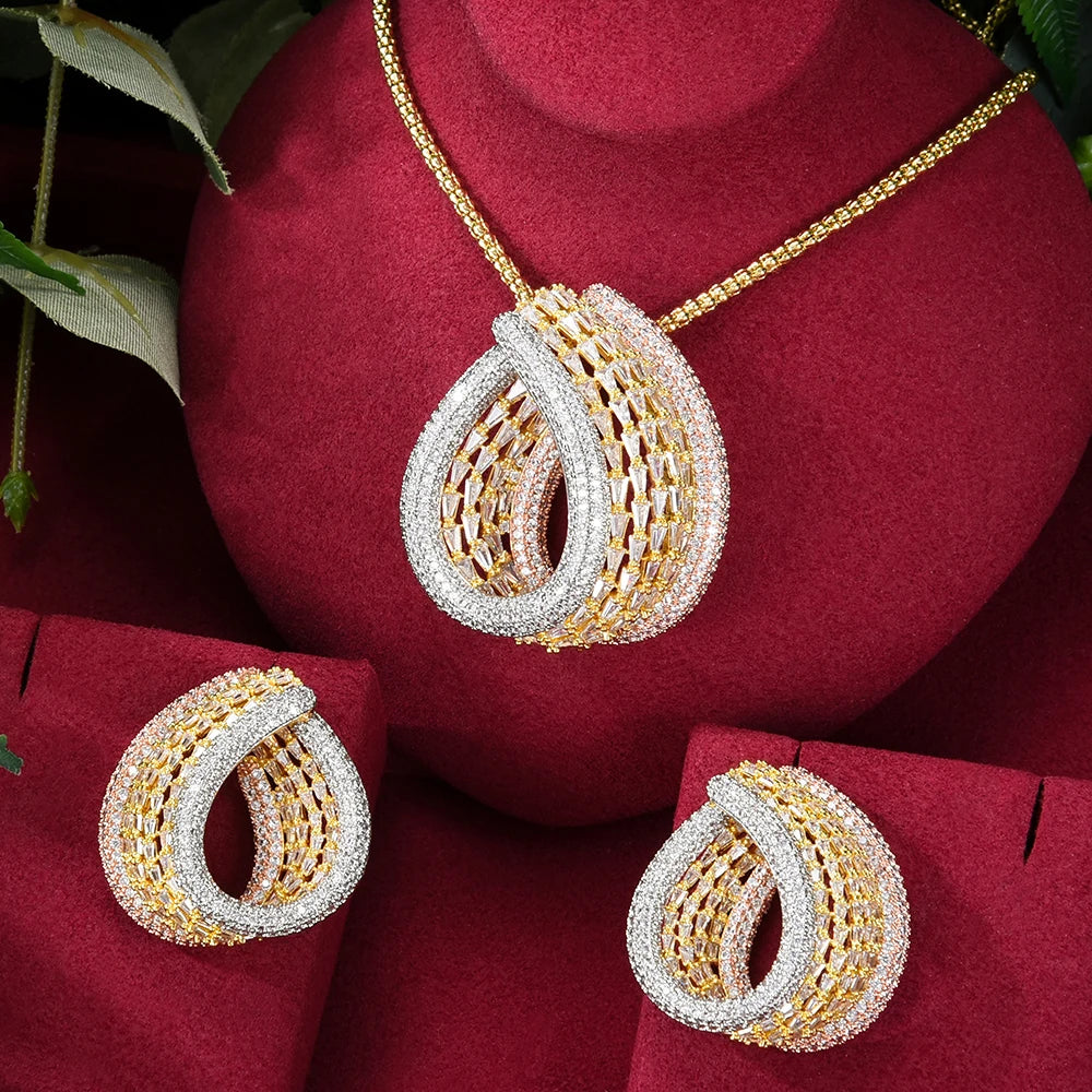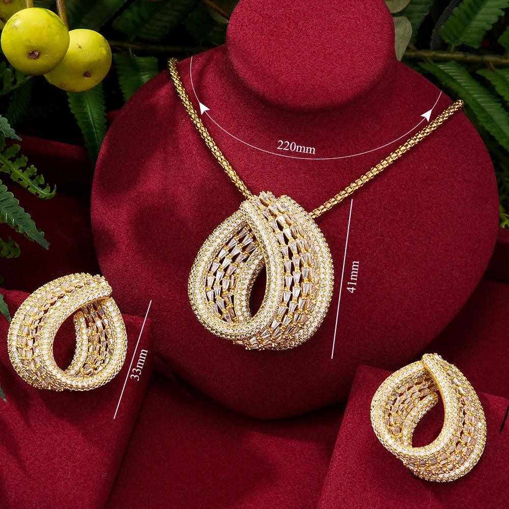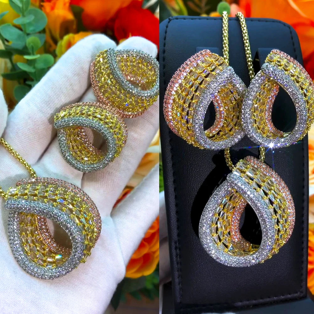 New Luxury Bridal Wedding Big Sparkling Long Pendant Earrings Necklace Jewelry Set Super CZ New Design Fashion Jewelry
