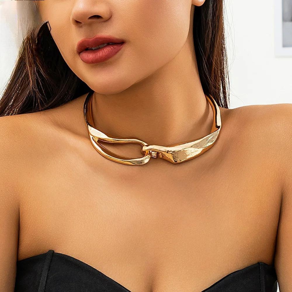 New Metal Choker Necklace for Women Exaggerated Chunky Statement Pendants Gothic Irregular Jewelry Trendy Neck Accessories
