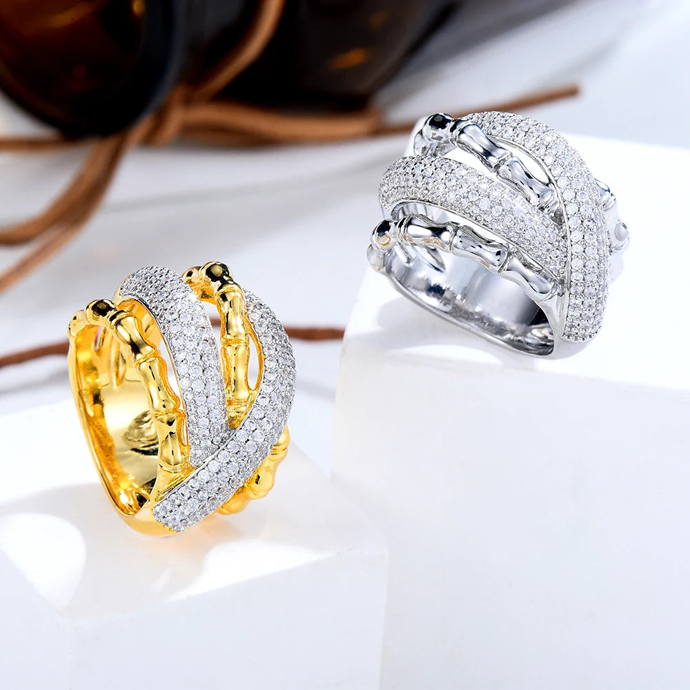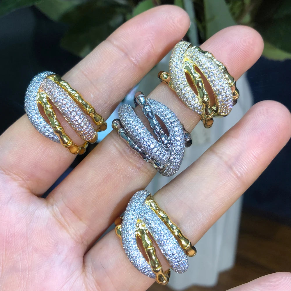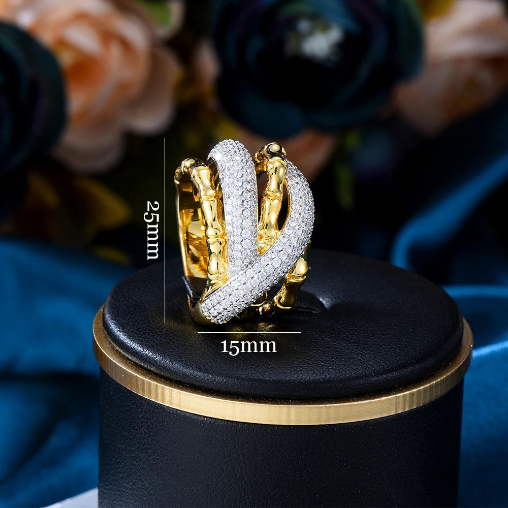 New Monaco Design Luxury Crossover Stackable Rings For Women Wedding Cubic Zircon Engagement Dubai Bridal Finger Rings