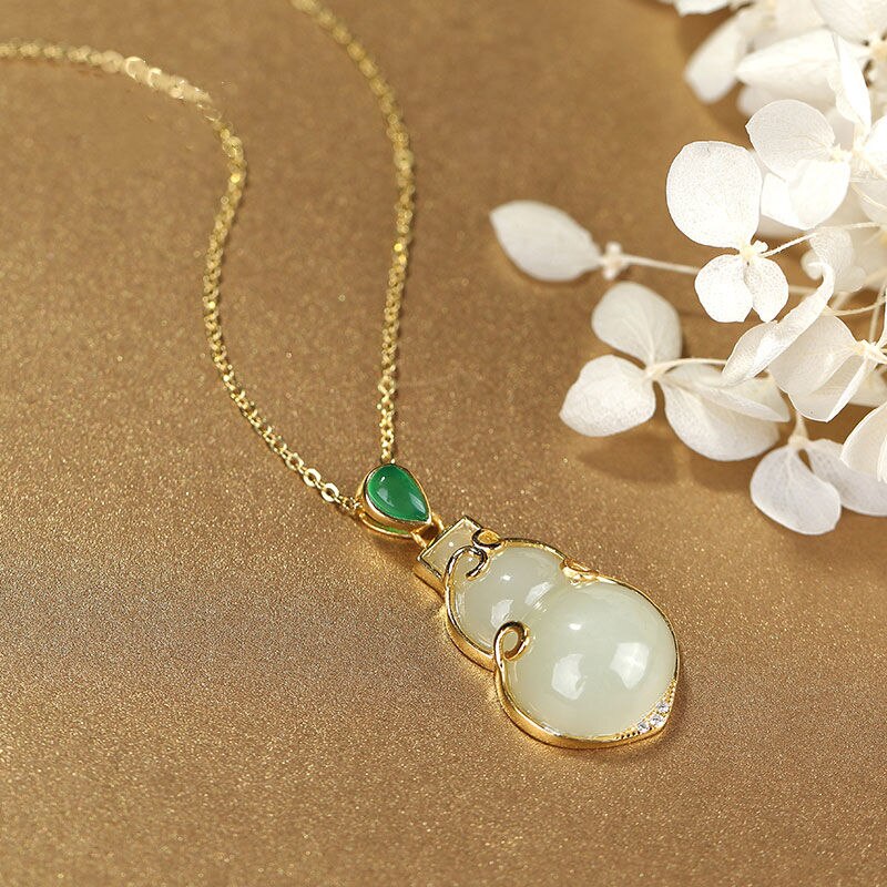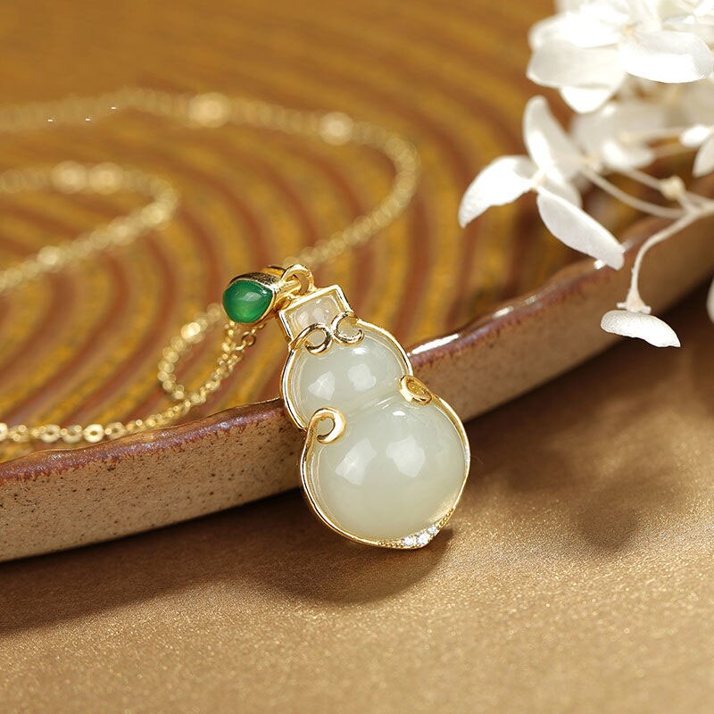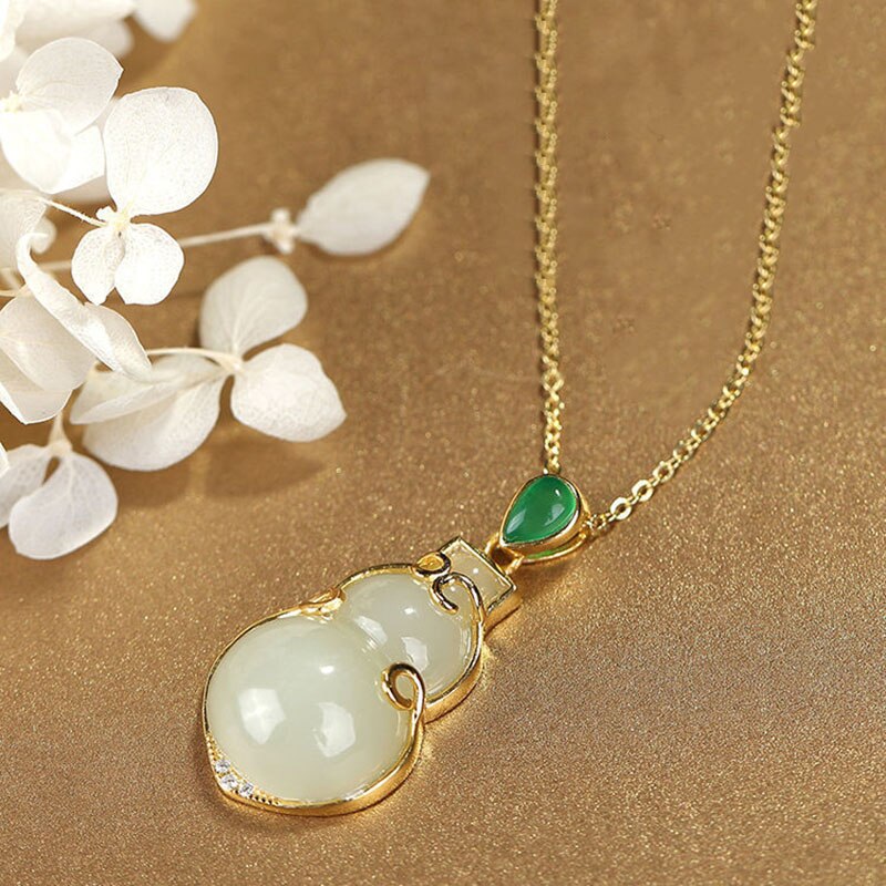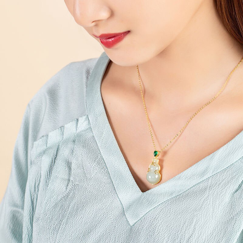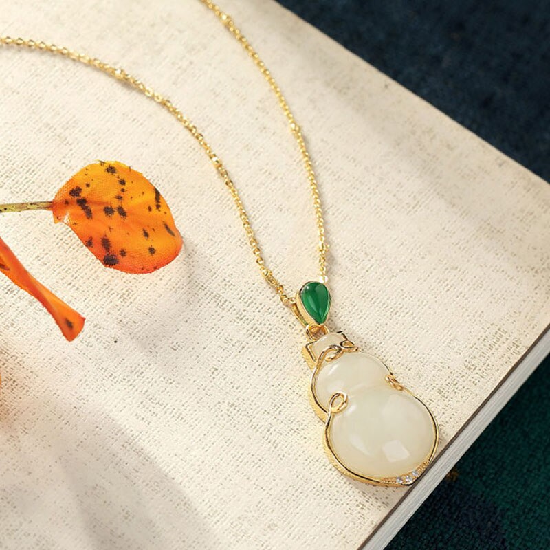 Pendant Necklaces-New Natural Chalcedony Hetian White Jade Calabash Pendant Necklace Inlaid with Phnom Penh Light Luxury Women's Jewelry
