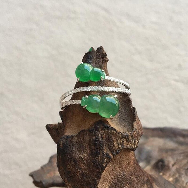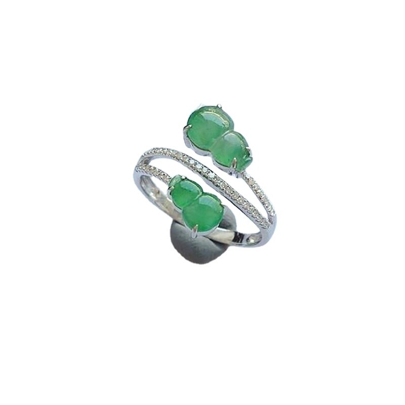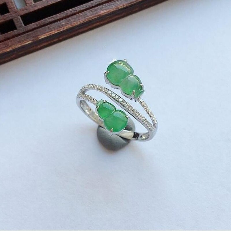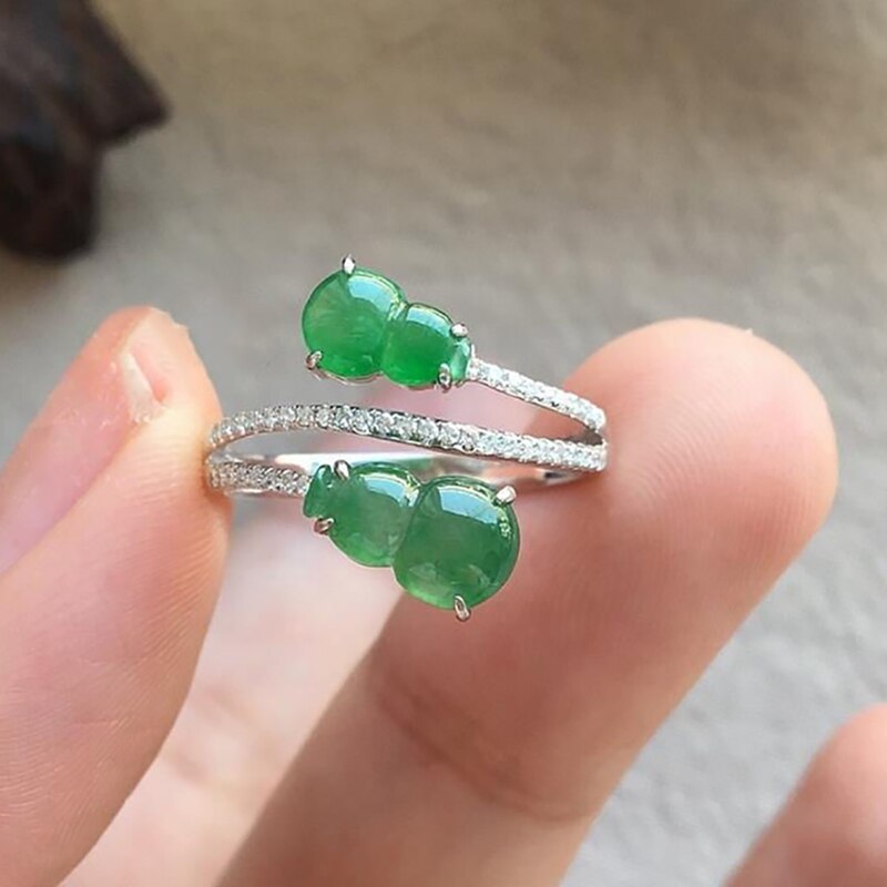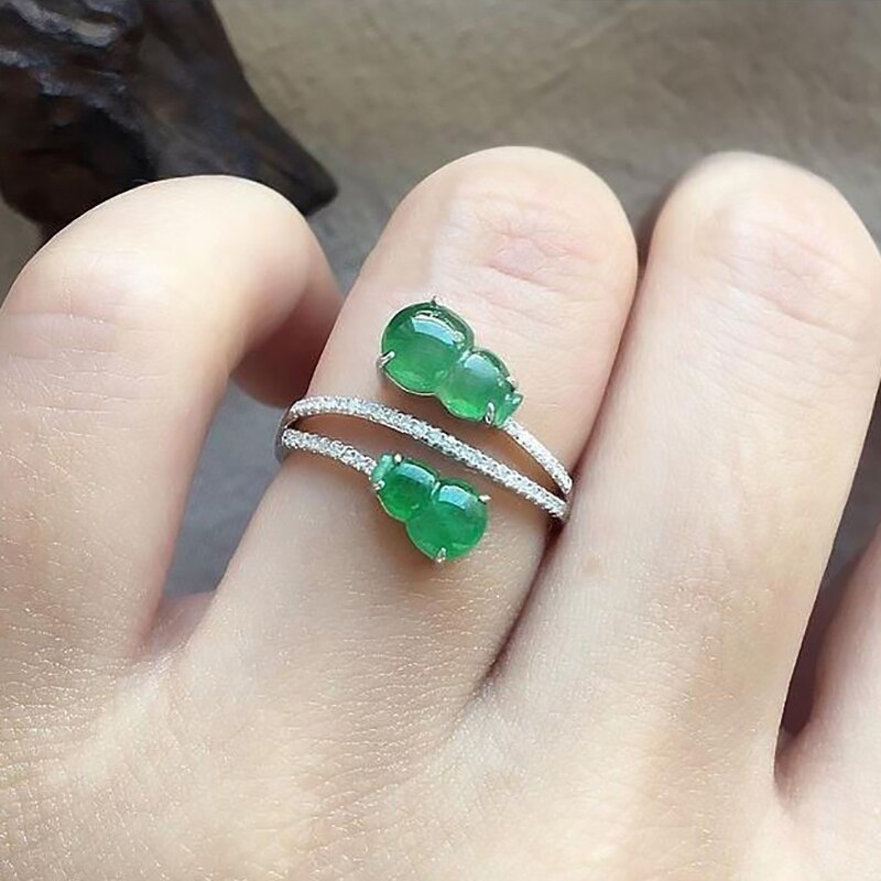 Cocktail Ring-New natural Hetian jasper double gourd opening adjustable ring Chinese style retro charm female brand silver jewelry