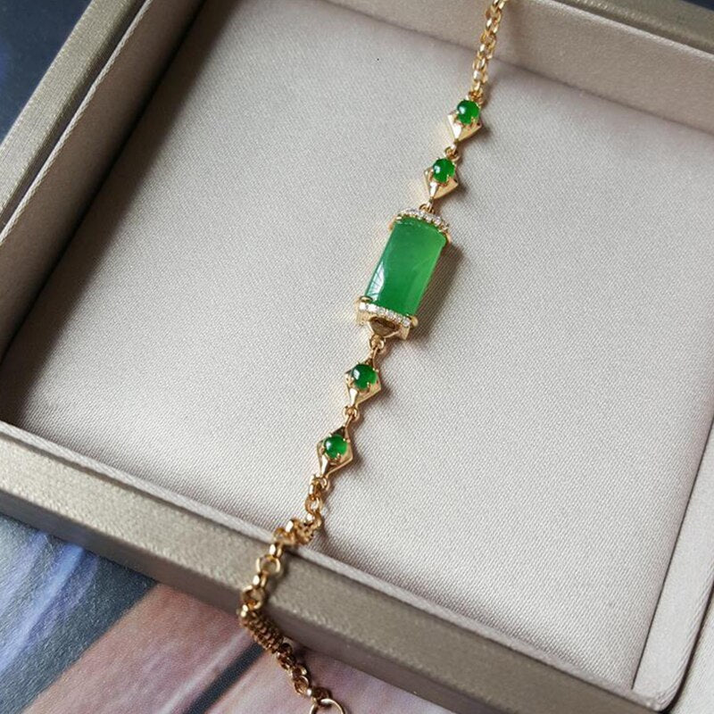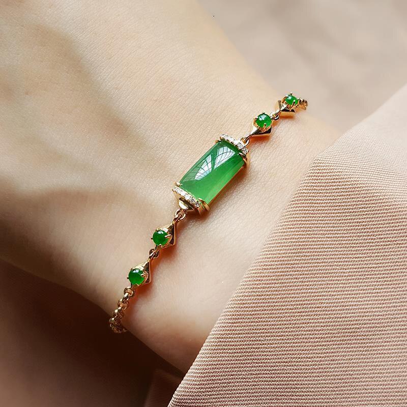Bracelets-New original inlaid sun green rectangular egg-shaped bracelets for wome elegant charm creative retro silver jewelry