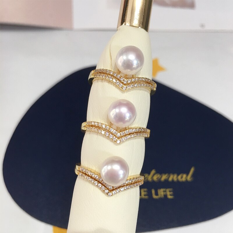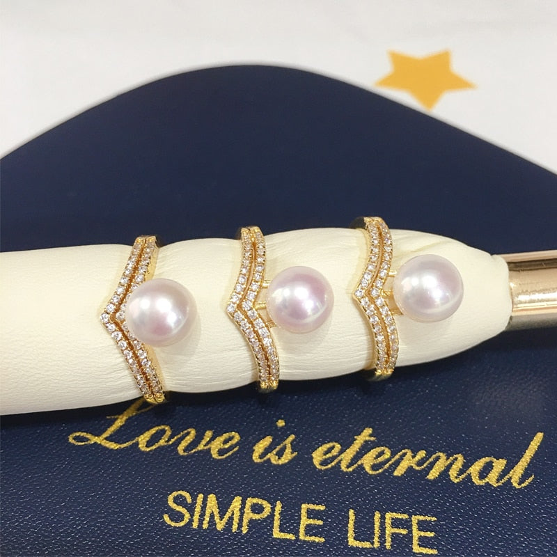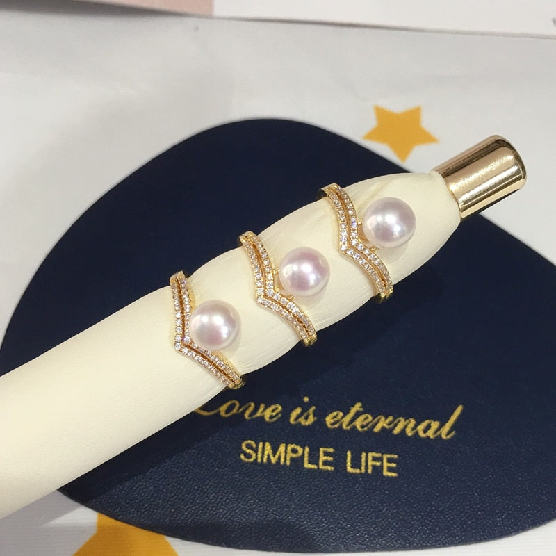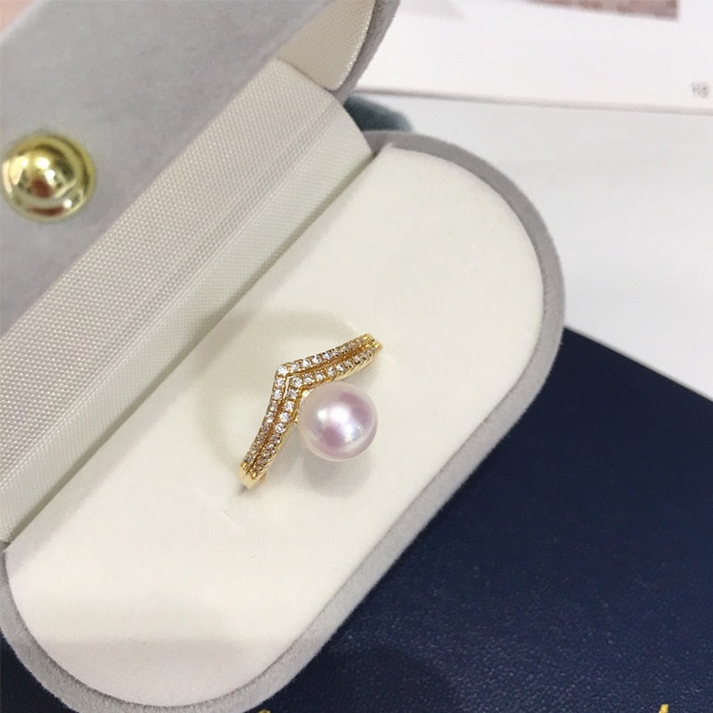 New Pearl Ring 14K Gold Plated Freshwater Pearl AAA Zrcon Triangle Personality Ring