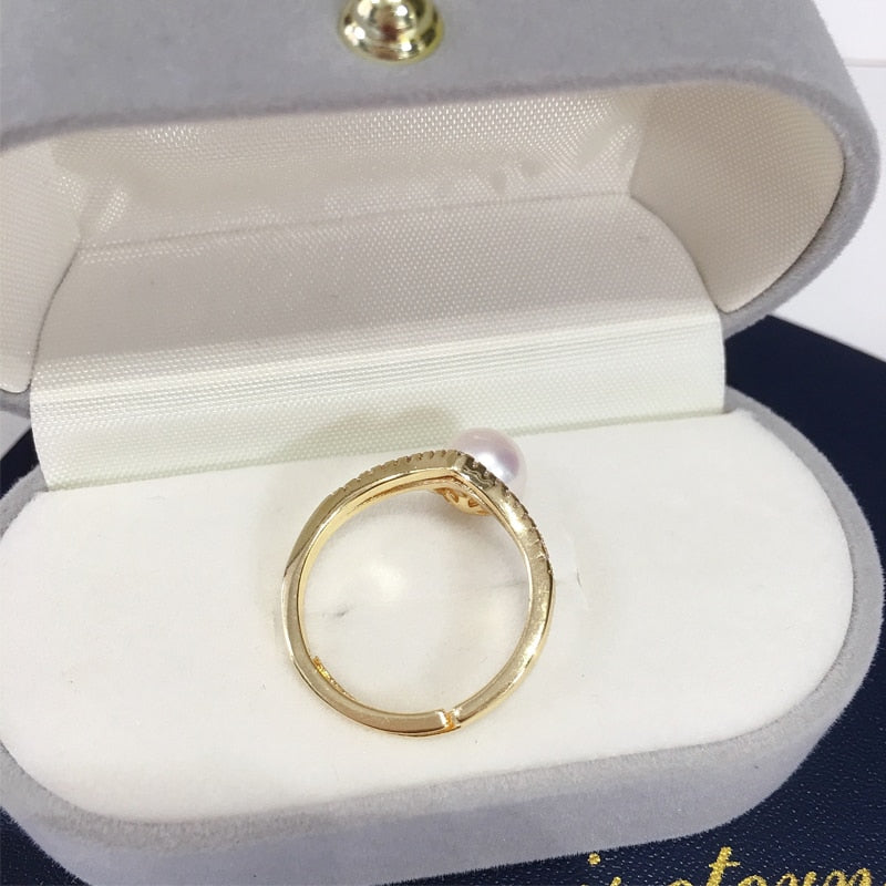 Pearl Rings-New Pearl Ring 14K Gold Plated 100% Natural Freshwater Pearl AAA Zrcon Triangle Personality Ring Jewelry Gift