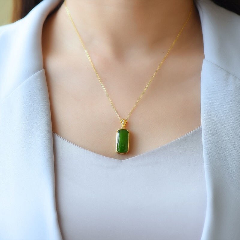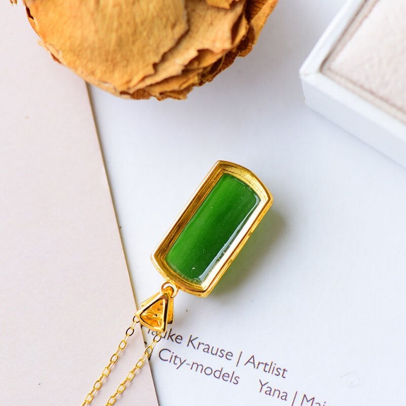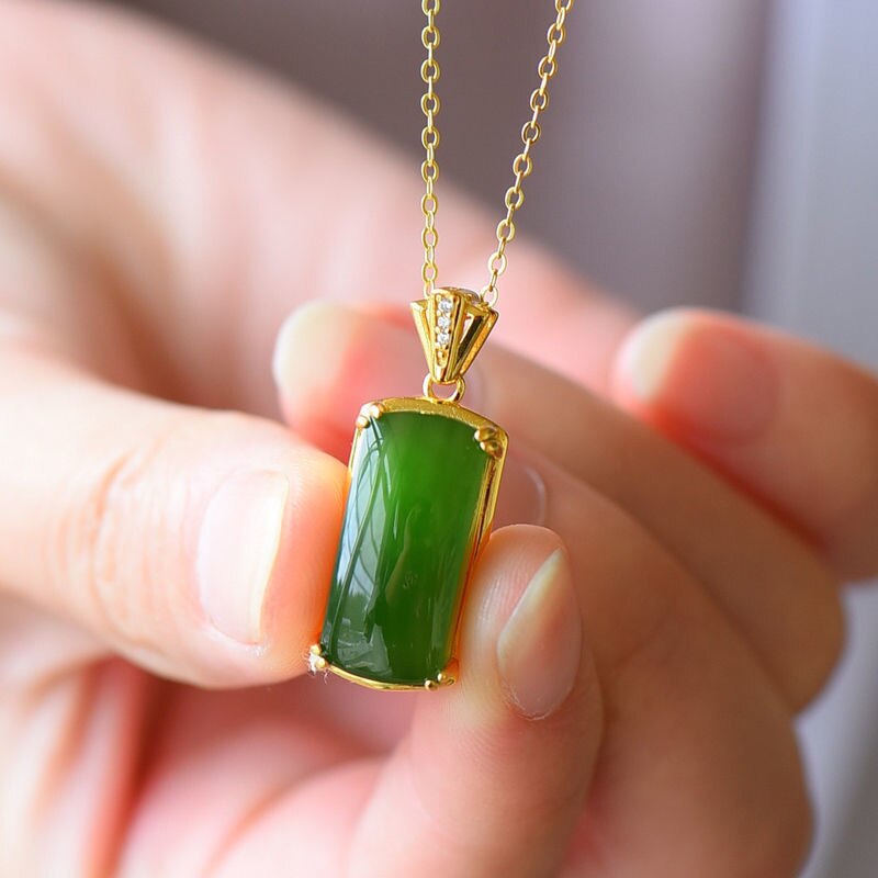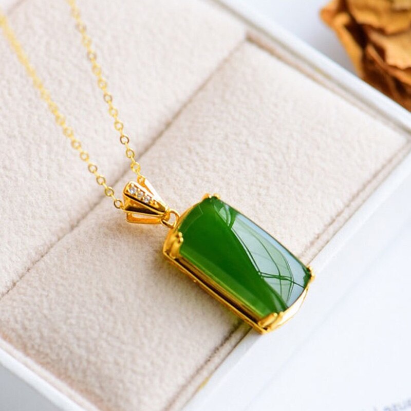 Pendant Necklaces-New product inlaid natural Hetian jasper pendant necklace Chinese style fresh and charming women's jewelry accessories