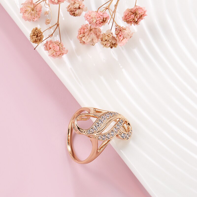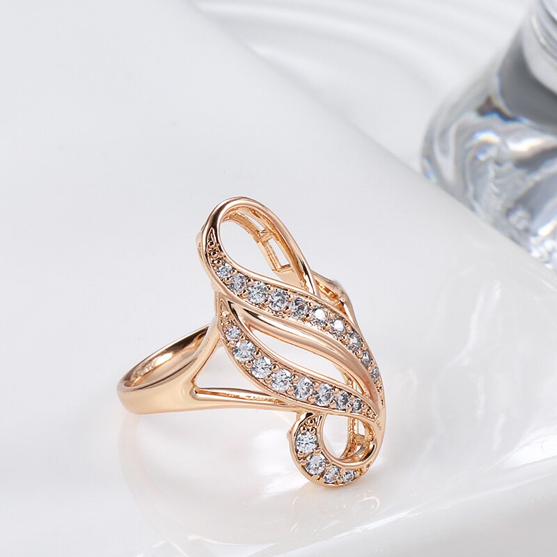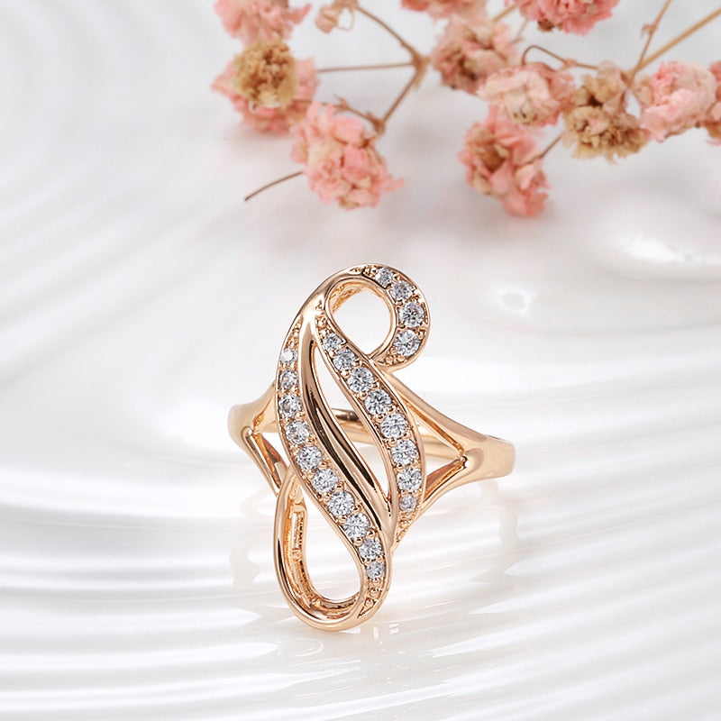585 Gold Jewelry-New Rose Gold Butterfly Zircons Rings for Women Protect Plating 585 Gold Hollow Curve Rings Glossy Wedding Fashion Fine Jewelry
